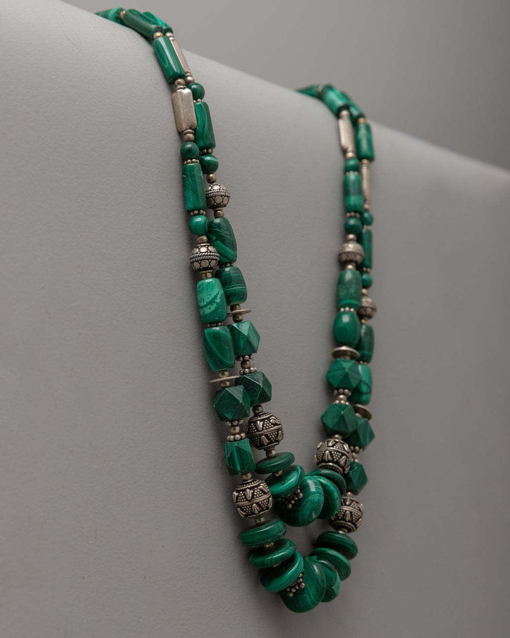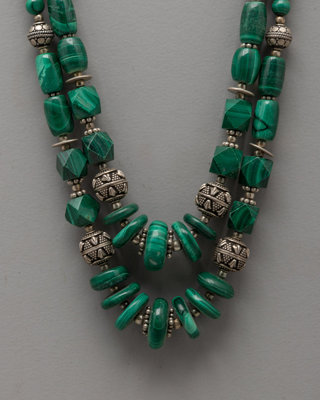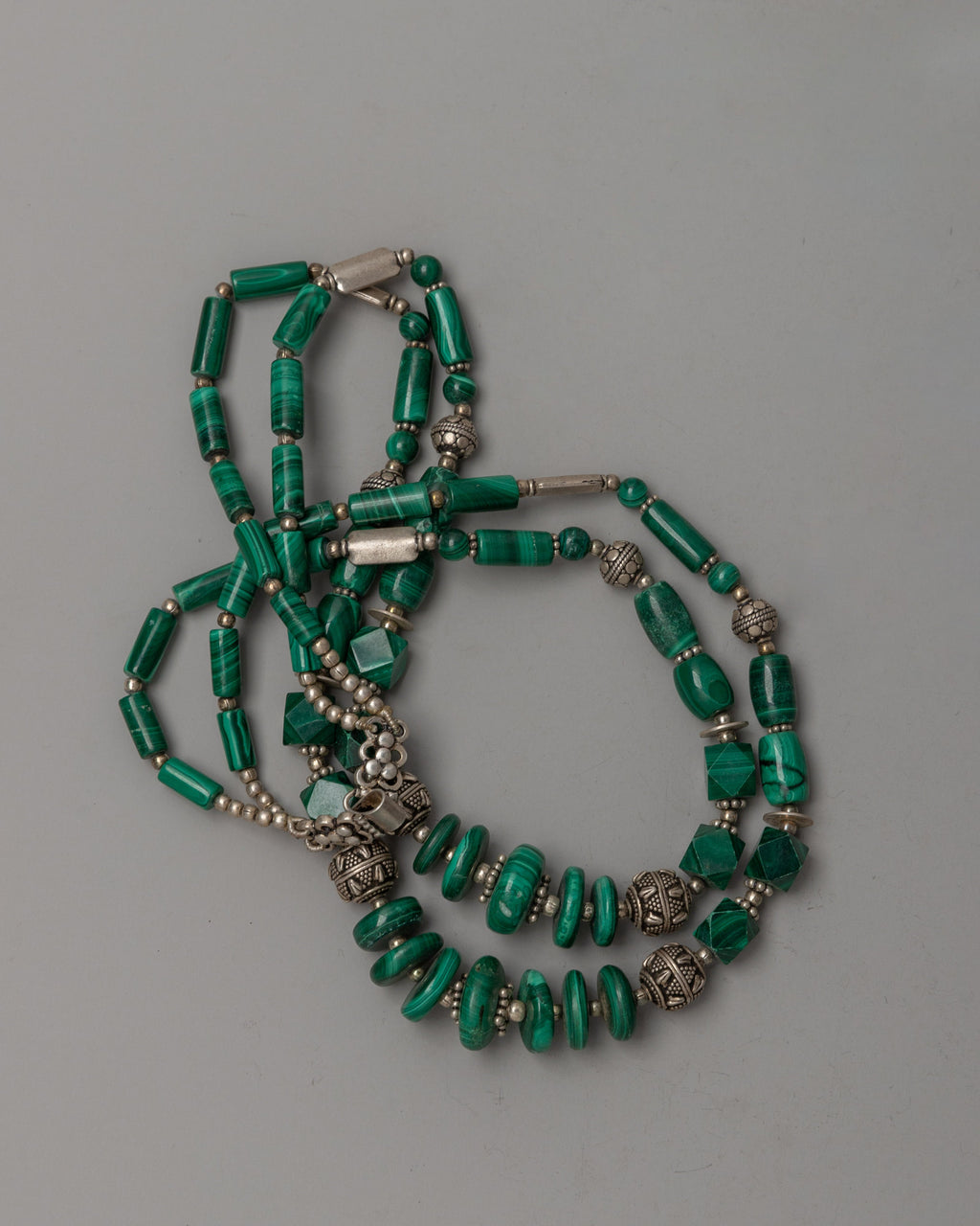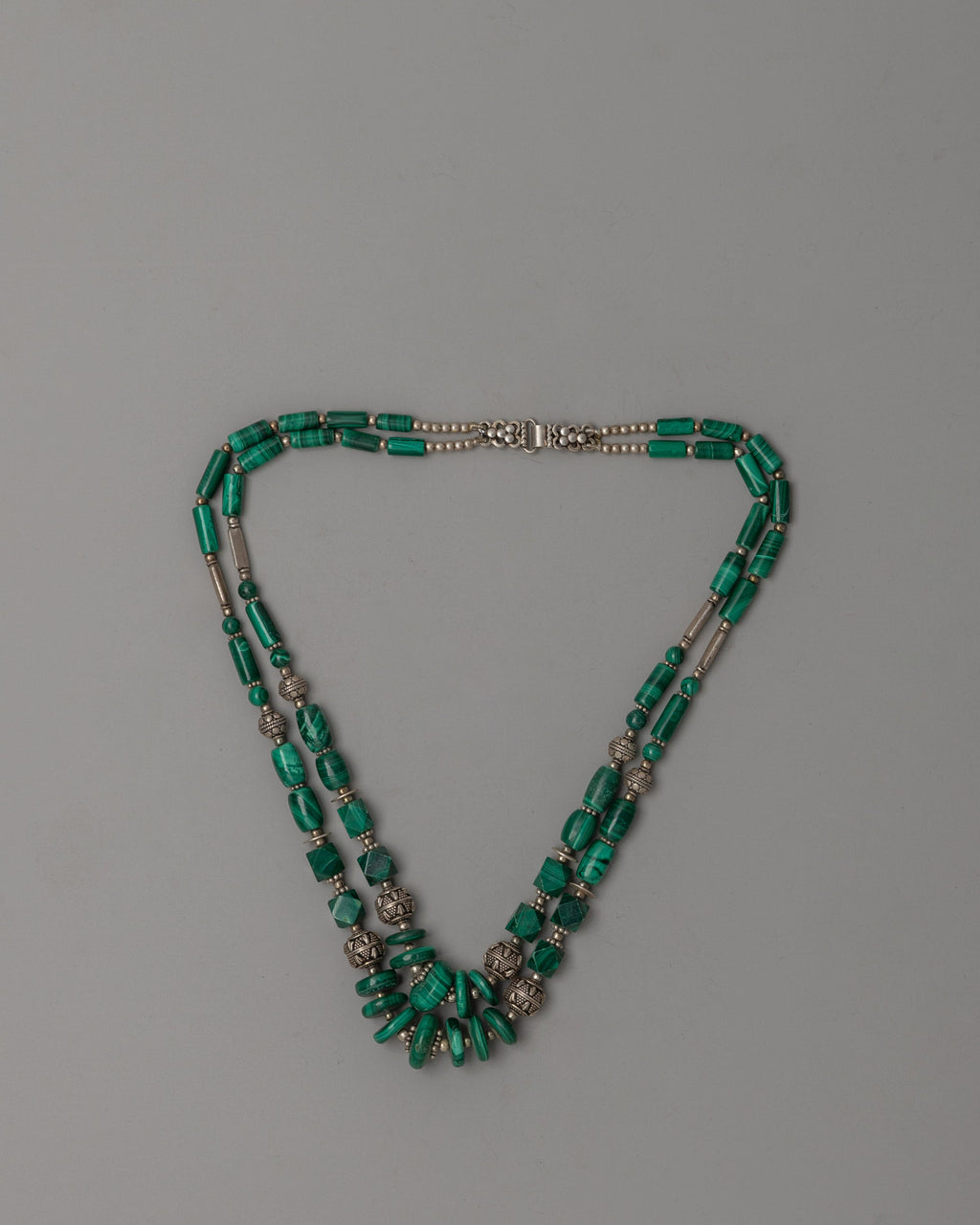 A piece of jewelry worn around the neck is called a necklace. Usually made of a chain, thread, or string, it is frequently embellished with beads, pearls, pendants, or other beautiful gems. Necklaces come in a variety of shapes and sizes, from long, graceful chains that fall to the chest to chokers that snugly fit around the neck. In addition to natural materials like leather and fabric, they can be constructed from a wide range of materials, including gold, silver, platinum, and other metals. Necklaces can be worn with various clothes and situations, and they are used for personal decoration, cultural significance, or fashion statement.