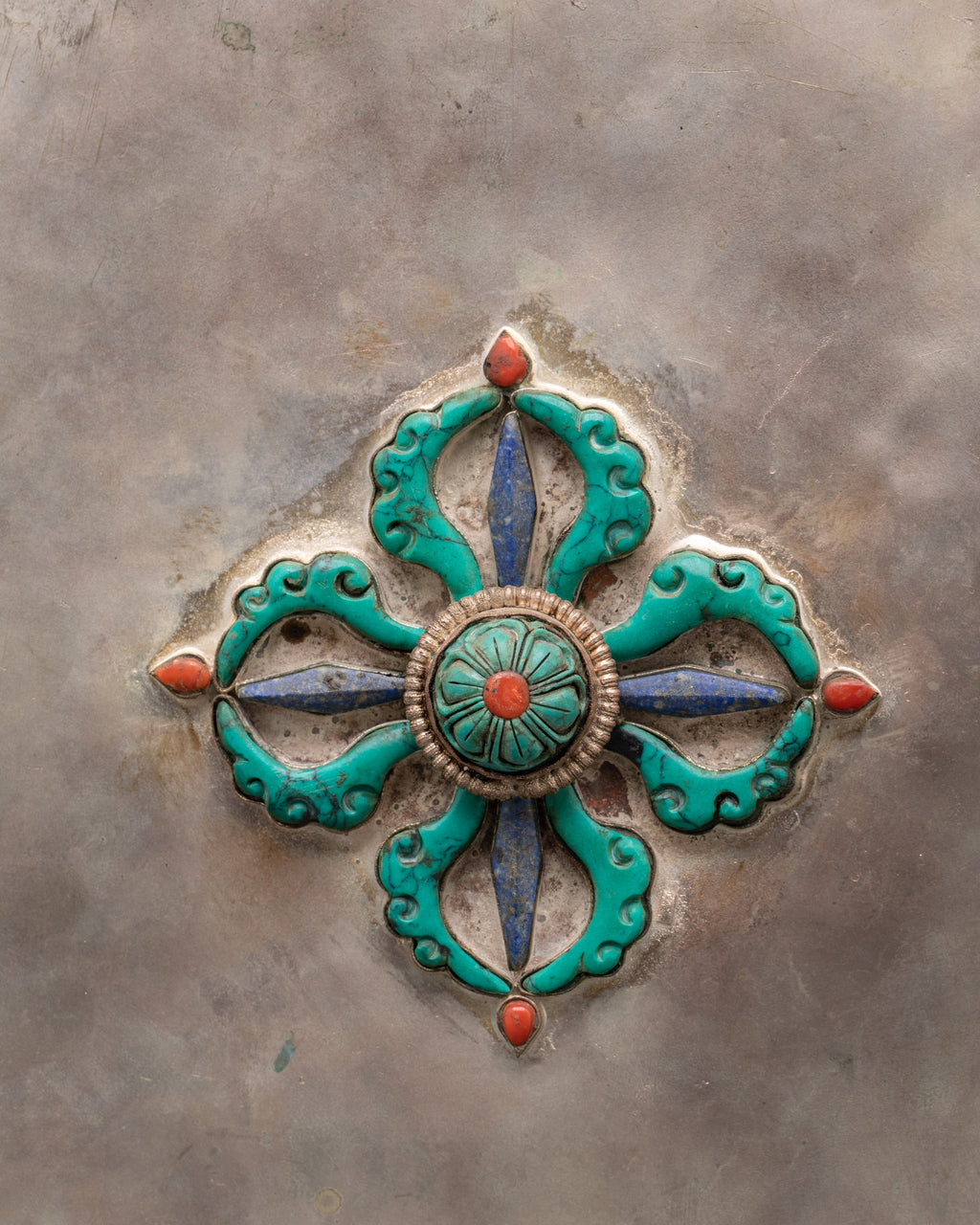 The Ghau Box with Manjushri is a masterfully crafted spiritual container that holds profound meaning and purpose. Inside, the powerful Manjushri the Bodhisattva of Wisdom- embodies clarity, wisdom, and enlightenment, inspiring deeper insight during your spiritual practices. Adorned with turquoise, the box enhances spiritual insight, while coral provides protection and emotional healing, creating a balanced and nurturing energy. Ideal for storing sacred items, offerings, or prayers, this box not only safeguards your most treasured spiritual tools but also elevates your altar or meditation space with its rich symbolism and exquisite craftsmanship. Embrace the Ghau Box with Manjushri to deepen your connection to wisdom and bring harmony and protection into your sacred environment.