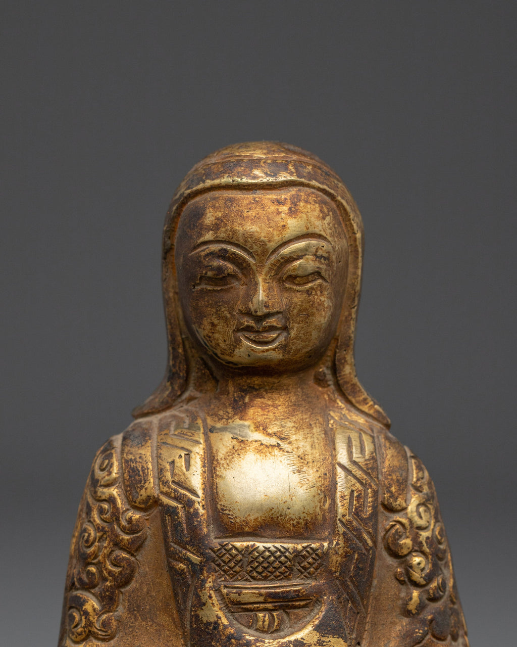 The Goddess Avalokiteshvara Guanyin Statue is an embodiment of divine mercy and healing. Avalokiteshvara, known as Guanyin in Chinese, is widely revered in Buddhist traditions for her infinite compassion and ability to provide protection and healing. The intricate details of this brass statue, from her graceful pose to the serene expression on her face, capture the essence of her nurturing energy. The gold-plated finish adds a touch of elegance, symbolizing spiritual purity and enlightenment. This statue is not just a work of art but also a powerful spiritual tool for those seeking peace, protection, and divine guidance.