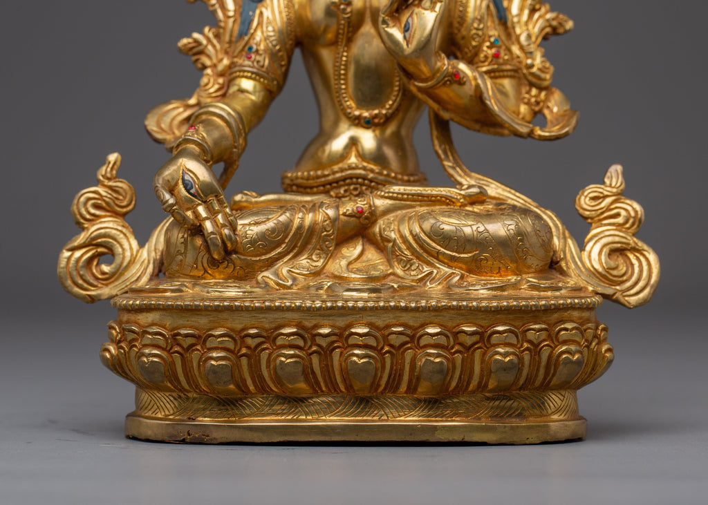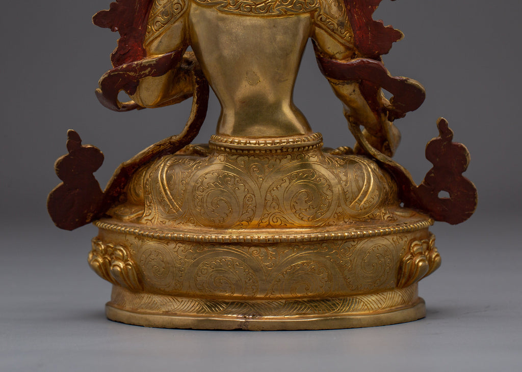 White Tara is depicted with seven eyes, which represent her caring alertness, and make her distinct. Aside from the two usual eyes, she has a third eye on her forehead, one on each hand, and one on the soles of her feet. Her graceful appearance and elegant design make this statue a powerful symbol of healing, compassion, and protection, inviting longevity and good health to those who revere her.
