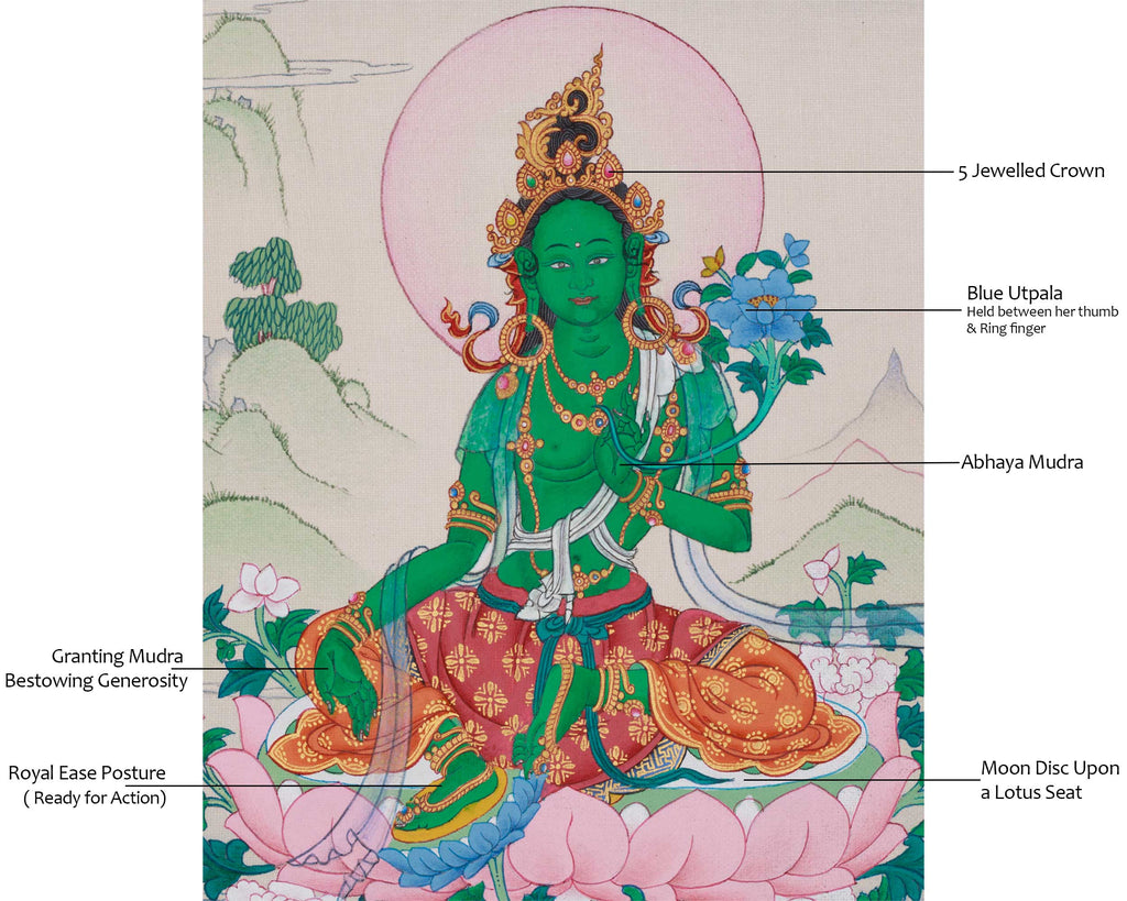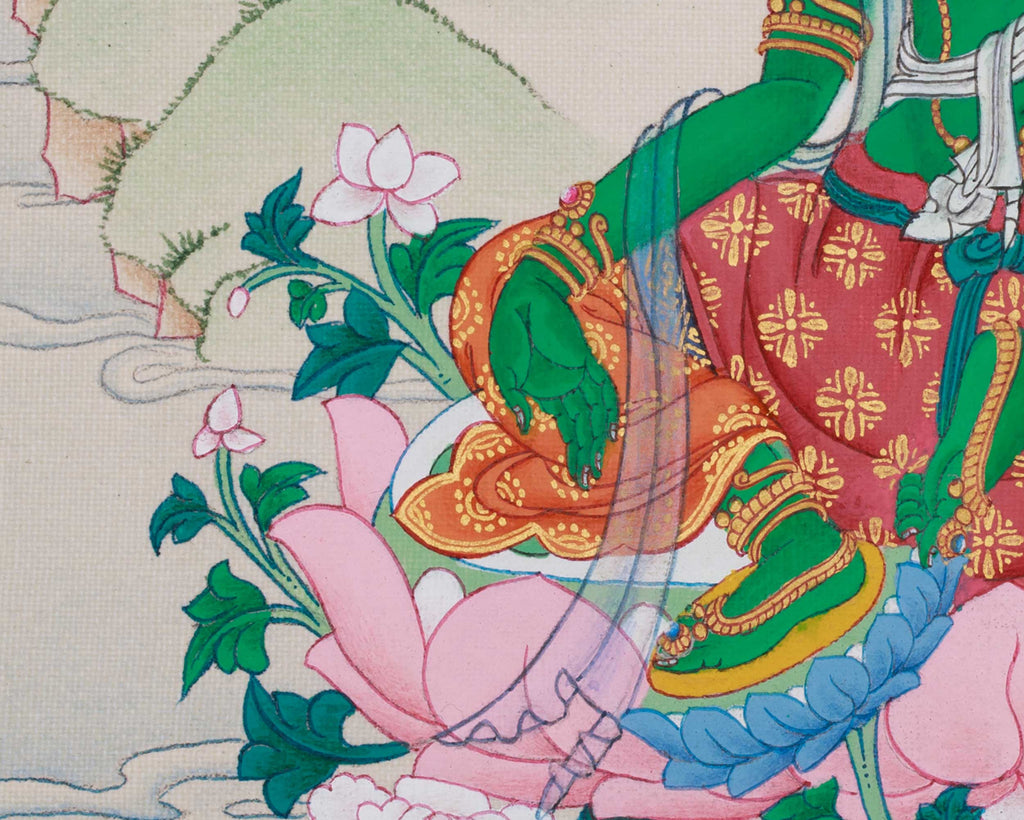 Goddess Shyama Tara Thangka | Compassionate Saviour Green Tara | Karma Gadri Artistry