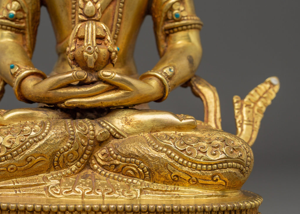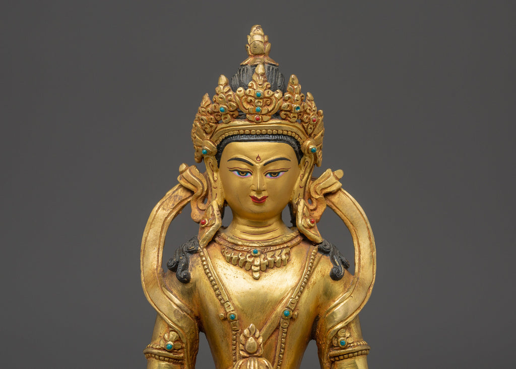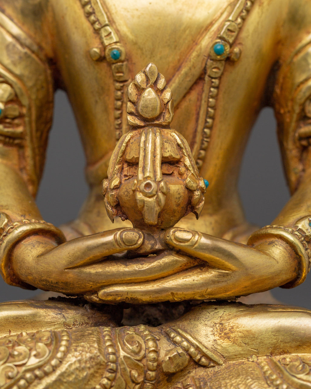 Handmade Gold Gilded Amitayus Buddha Copper Statue | Sculpture for Longevity & Meditation