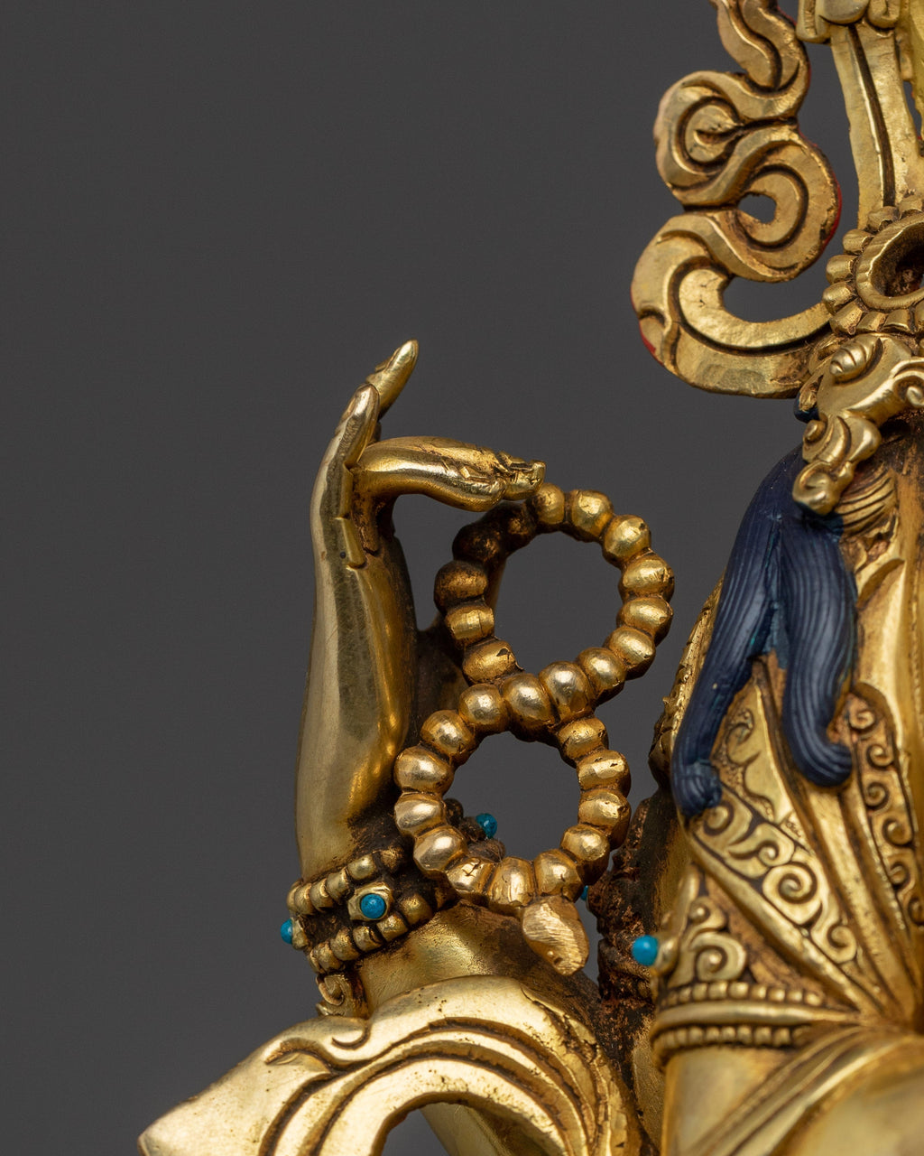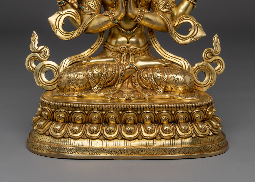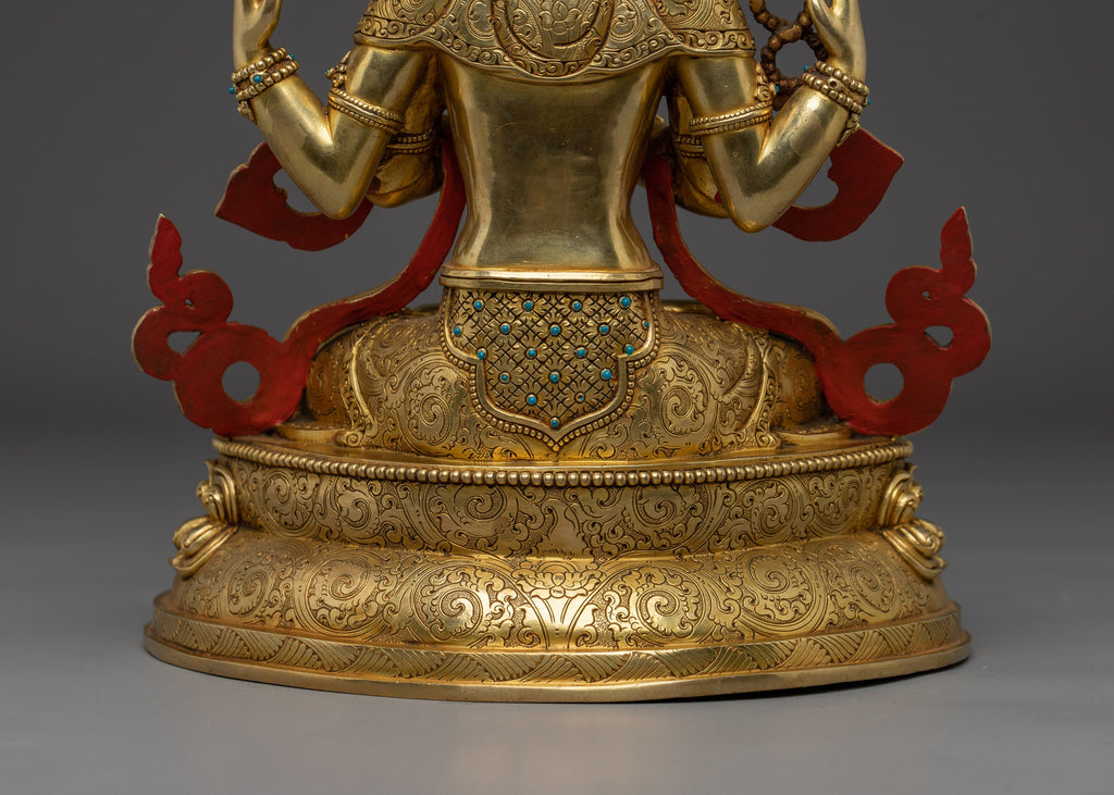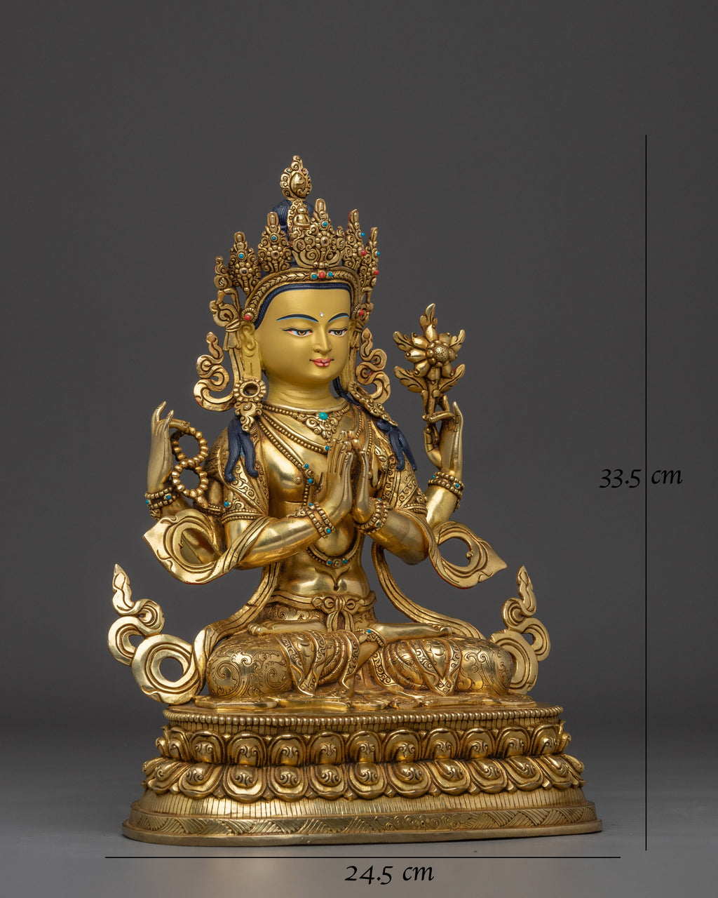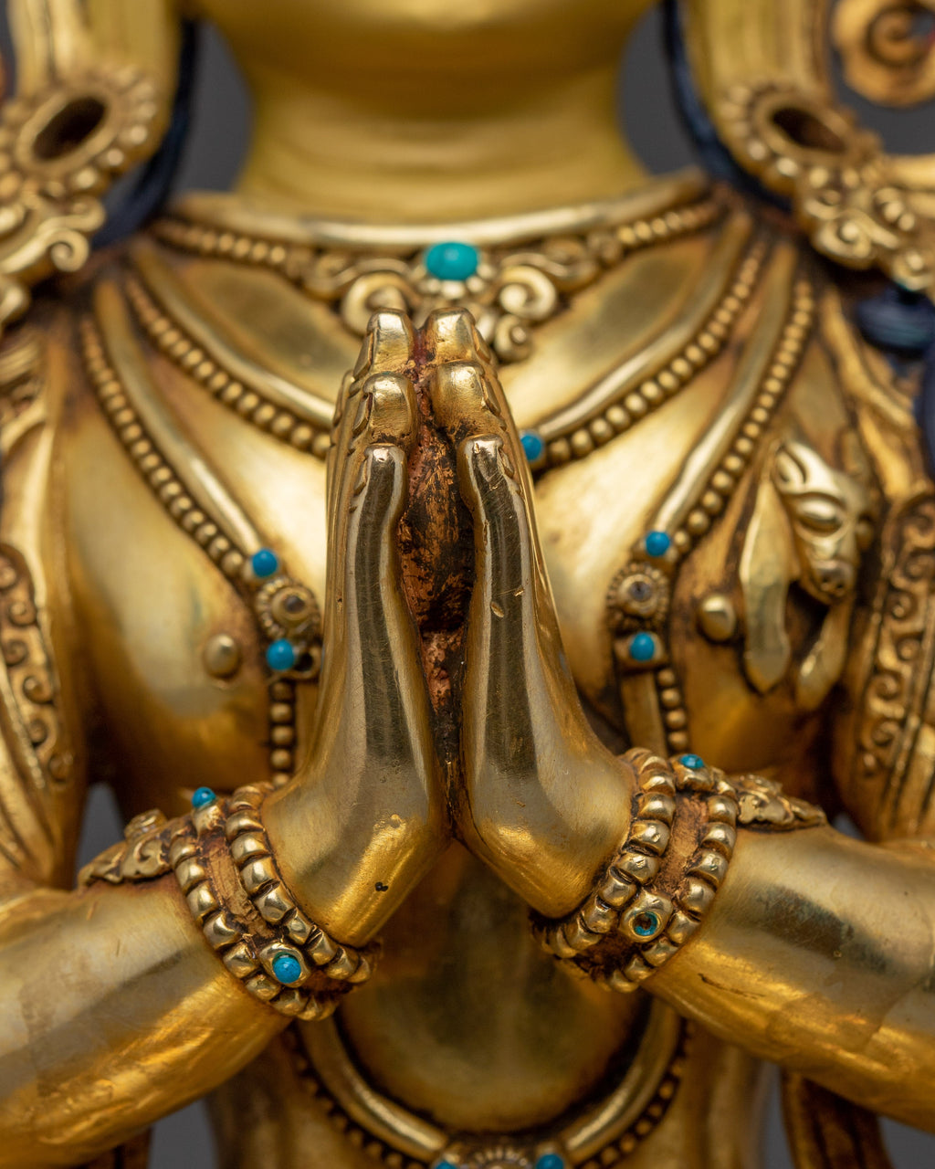 Gold Gilded Chenrezig Statue with Copper Body | Compassion & Blessing Decor