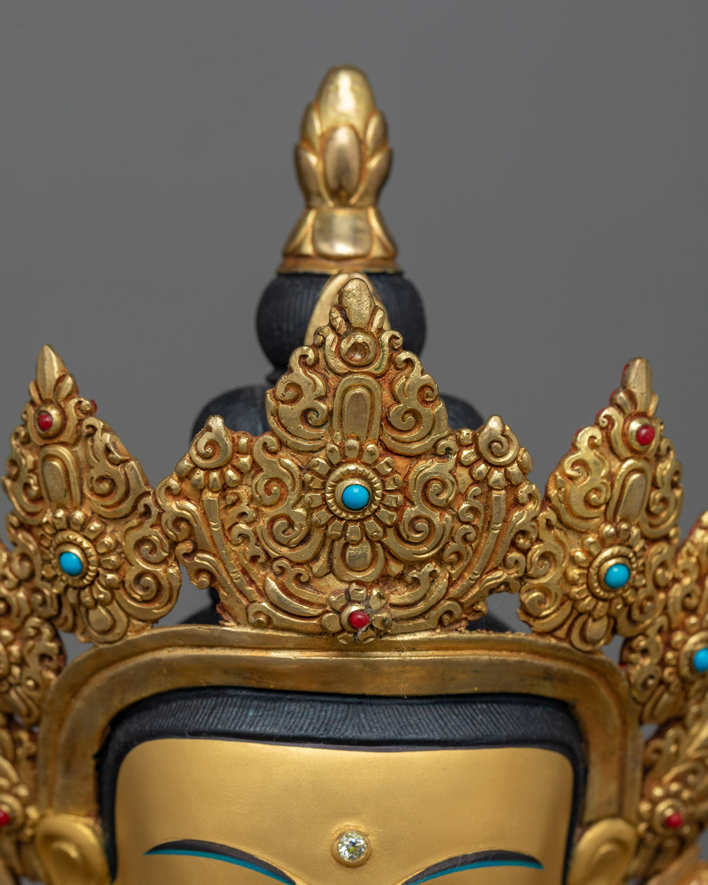 To call forth the compassion, mercy, and loving-kindness of the Bodhisattva, place this gold-gilded compassionate Chenrezig statue in the middle of your house, temple, or other sacred space.