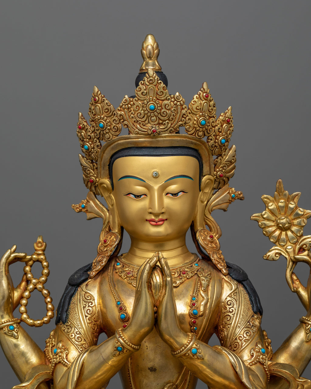 The Timeless Grace of the Gold-Gilded Compassionate Chenrezig Statue