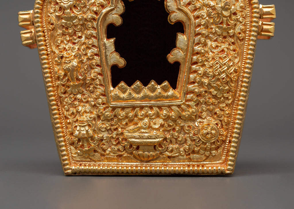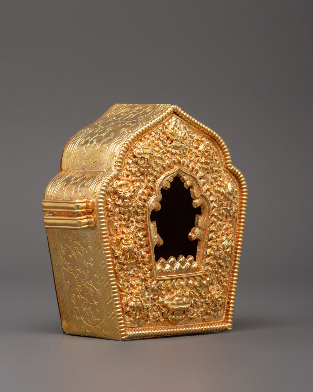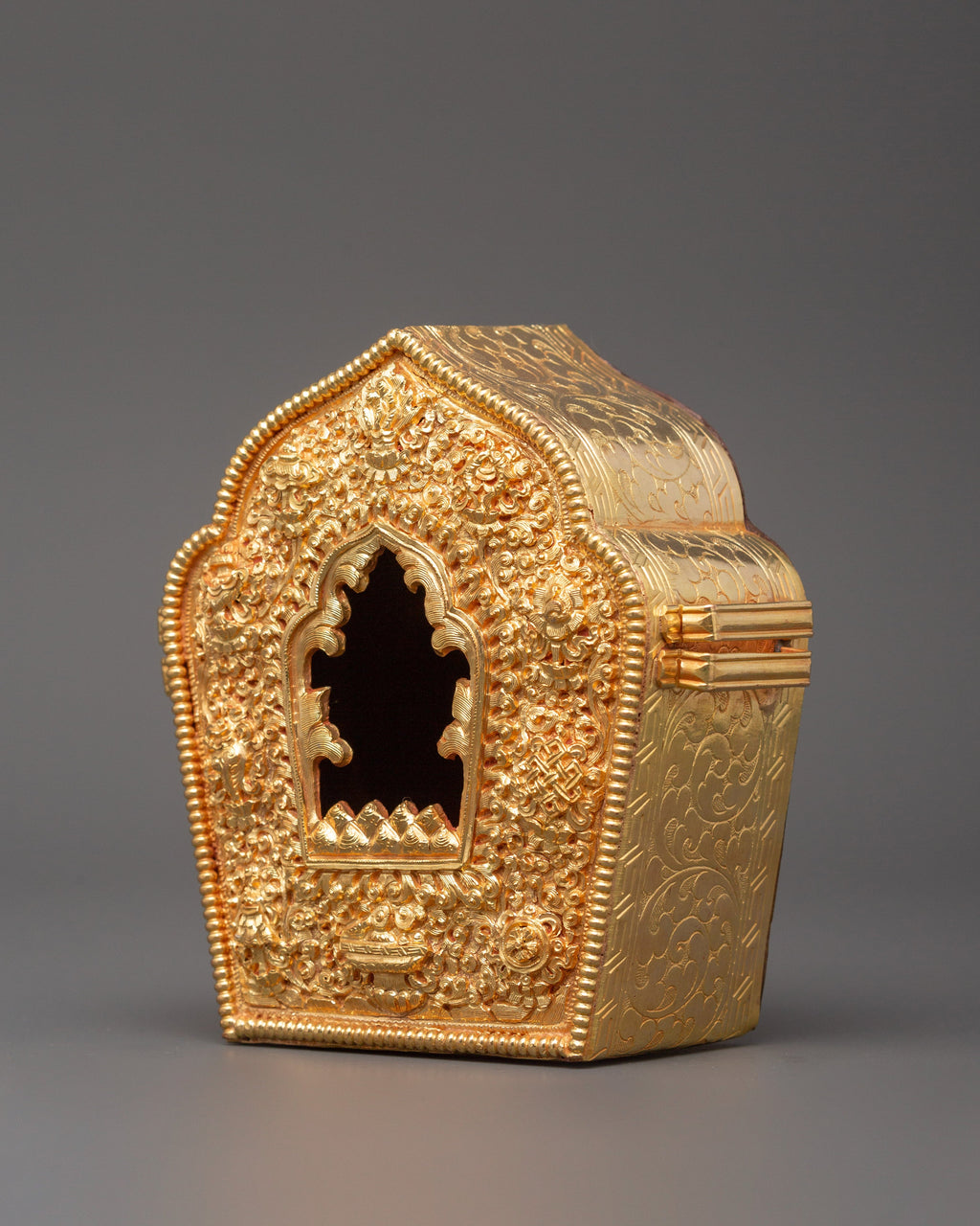 Gold-Plated Buddhist Ghau Box | Symbol of Spiritual Strength