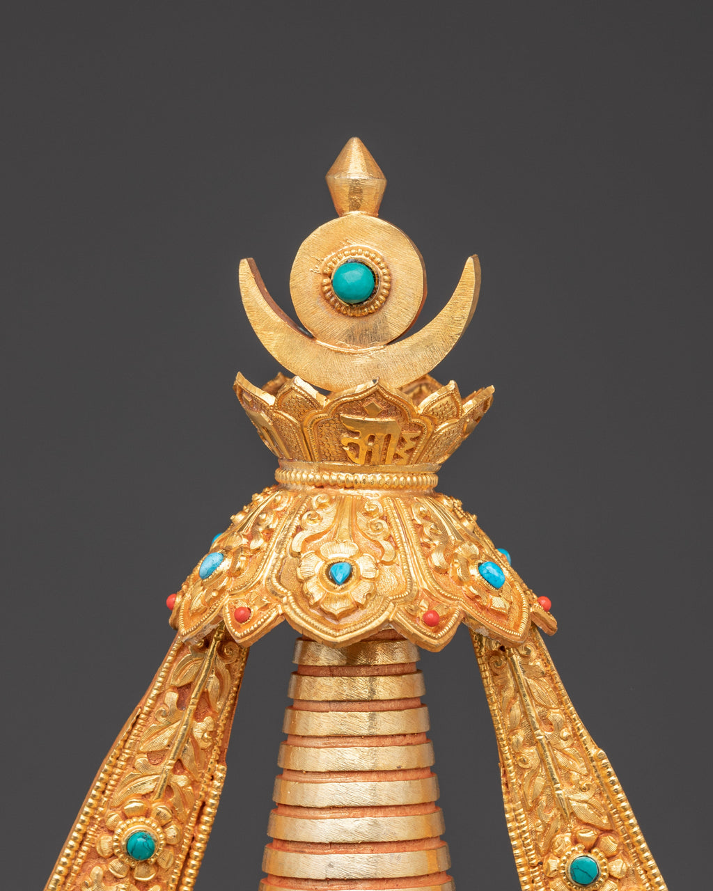 Traditional Gold Plated Buddhist Shrine Stupa | Spiritual Rituals and Home Blessings