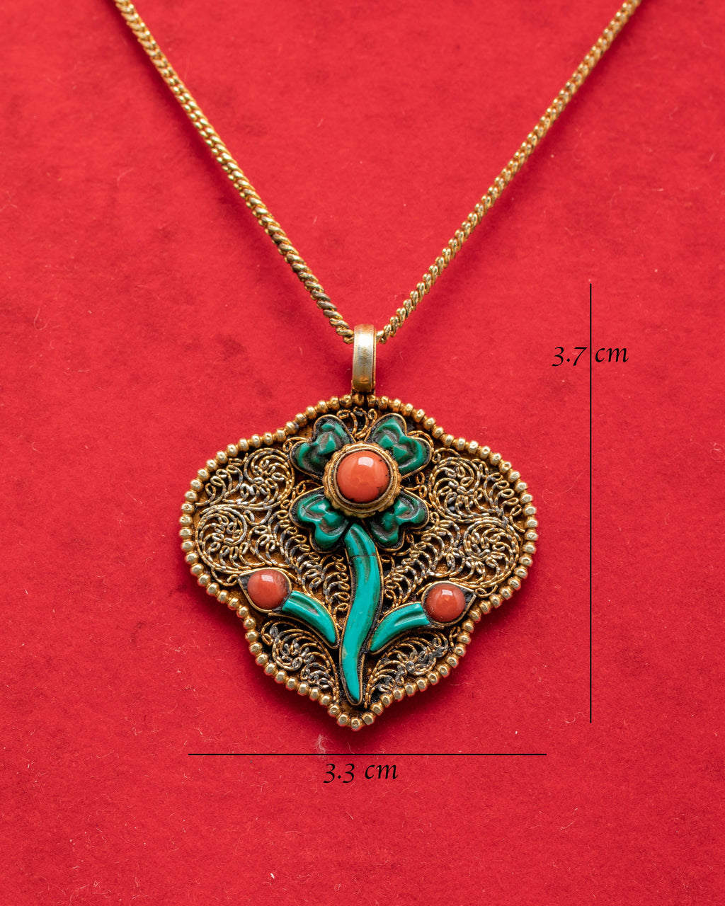 Measuring 3.7cm in height and 3.3cm in width, this locket is delicate yet eye-catching. The coral stone symbolizes vitality and positive energy, while the turquoise stone enhances healing and spiritual growth. Together, they create a balanced and harmonious energy within this elegant pendant. Whether worn as a daily accessory or during spiritual practices, this flower locket adds a touch of nature’s grace to your wardrobe.