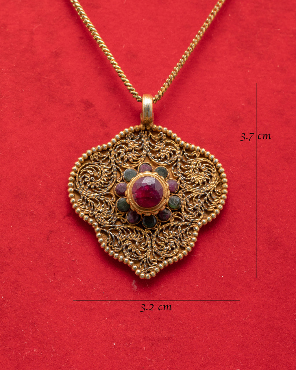 Measuring 3.7cm in height and 3.2cm in width, this locket is the perfect size for daily wear or as a special gift. The ruby stone represents passion and vitality, while the panna stone enhances clarity and wisdom. Together, they bring a balance of spiritual energy to this delicate yet striking piece. Whether worn for personal style or as a reminder of your spiritual journey, this gold-plated leaf locket adds a touch of nature’s grace to your collection.