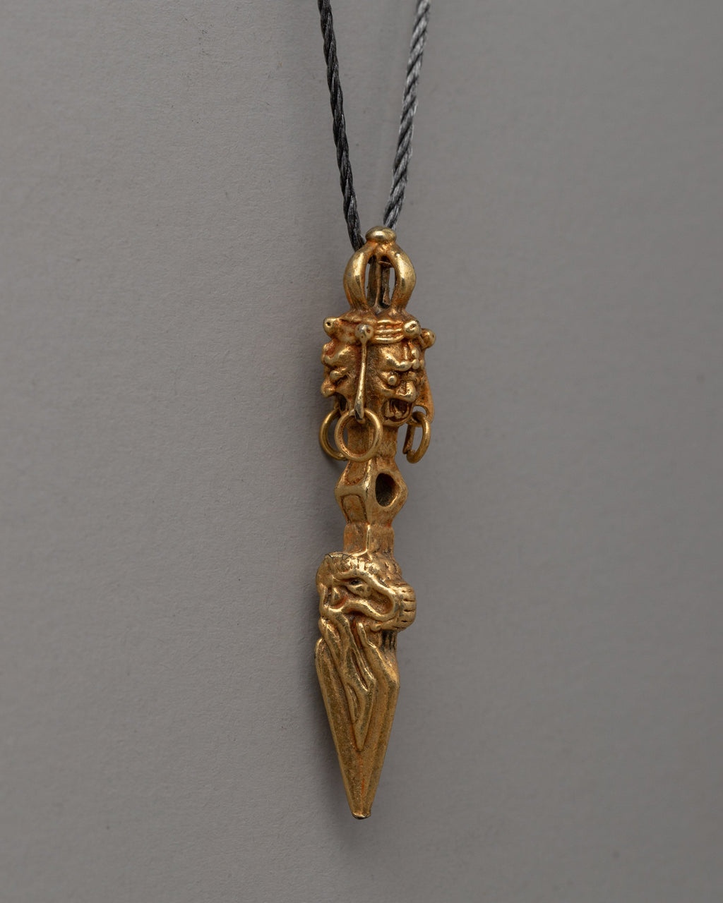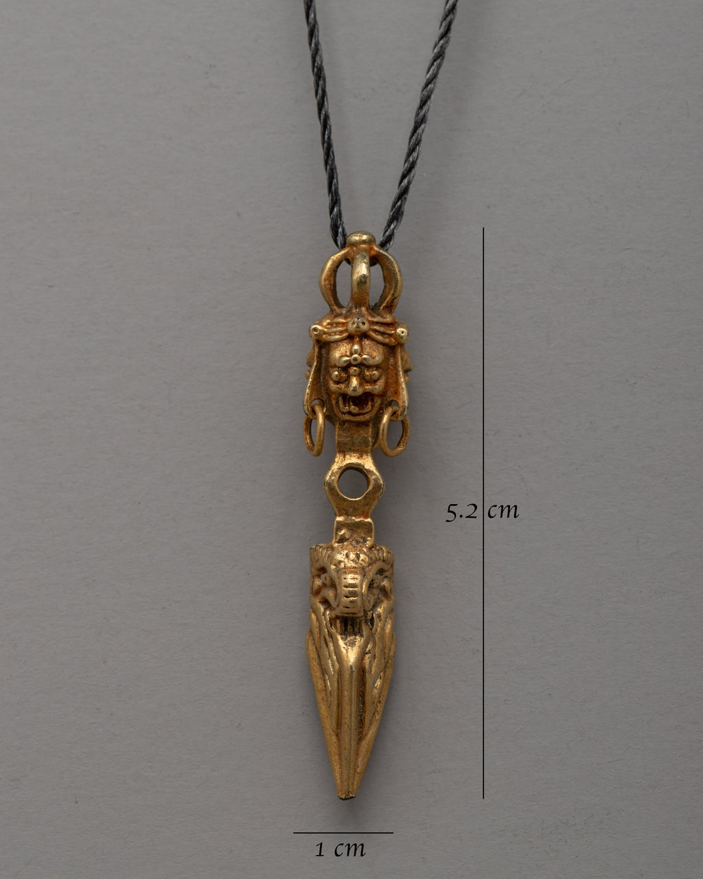With this handcrafted, electro-gold-plated Phurba locket made from a copper body, you may embrace the holy force of change. This exquisitely made pendant, which stands 5.2 cm tall, symbolizes the Phurba, a potent Tibetan ceremonial instrument that has long been used to balance spiritual forces and drive out negativity. It is a gorgeous addition to any collection of spiritual jewelry because of its small size and brilliant gold polish.