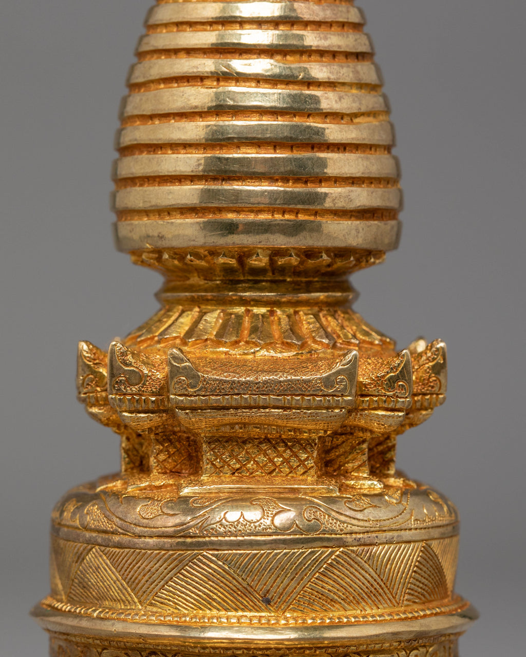 Spiritual Gold Plated Sacred Buddhist Stupa | Copper Stupa
