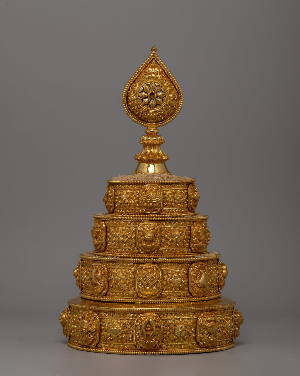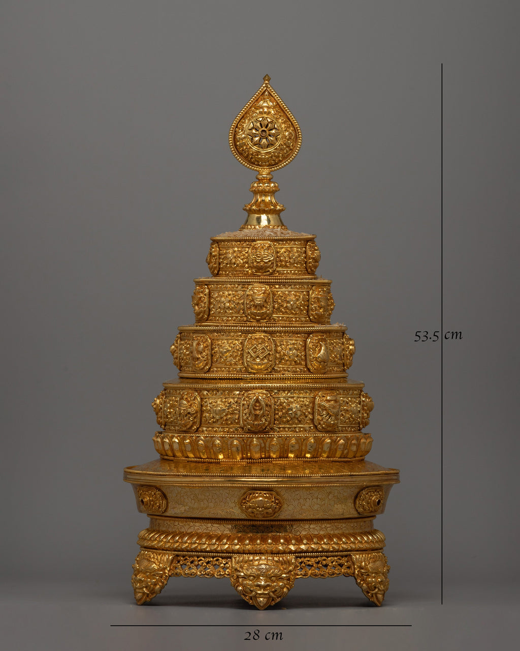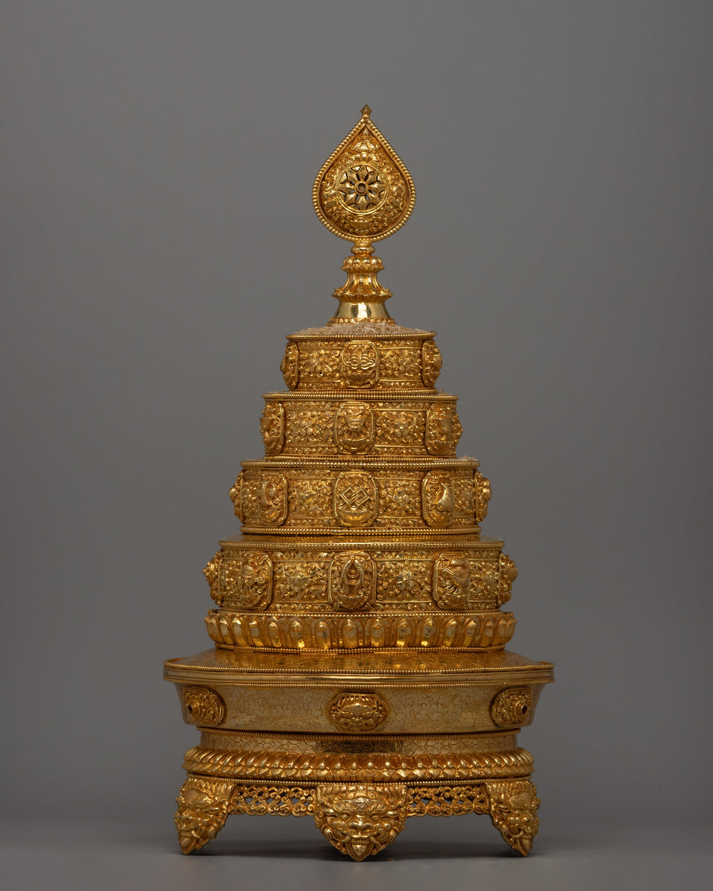 Gold-plated Stupa With a Copper Made - Spiritual Artifact, Sacred Meditation Symbol