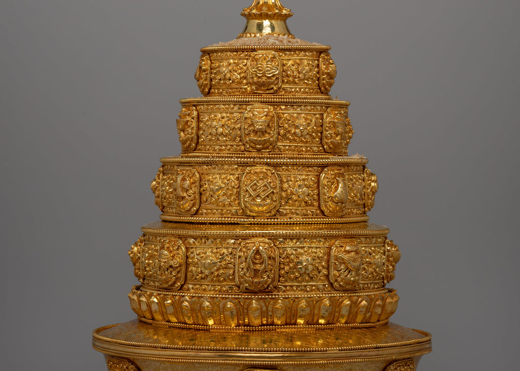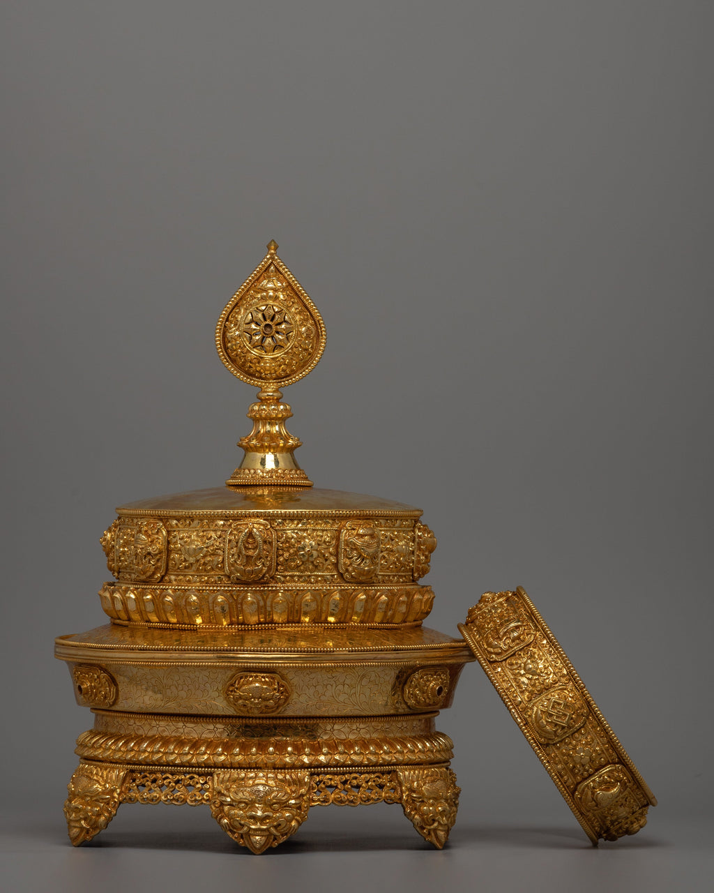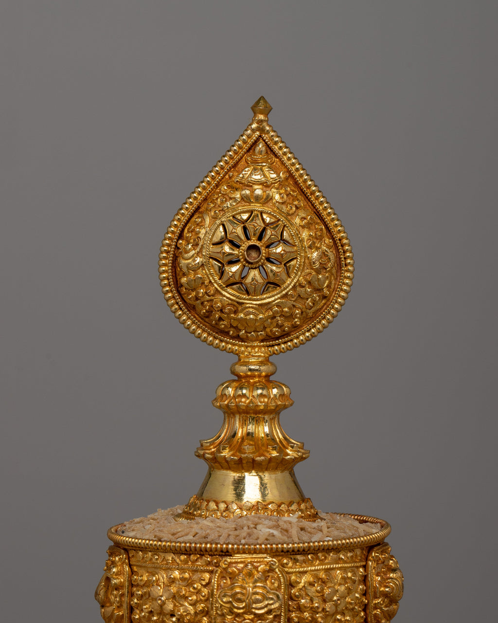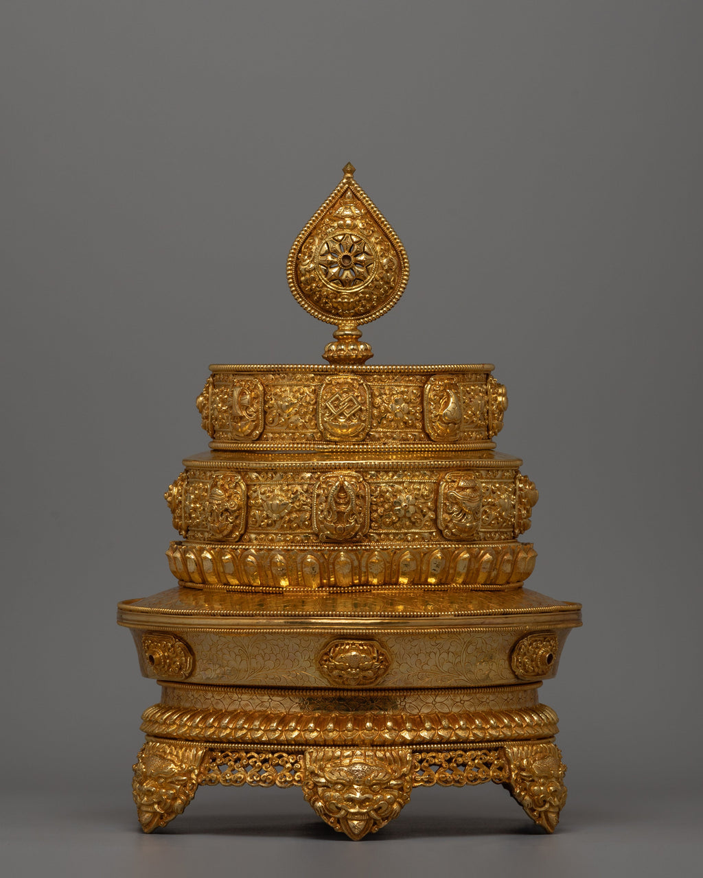 Gold-plated Stupa With a Copper Made - Spiritual Artifact, Sacred Meditation Symbol