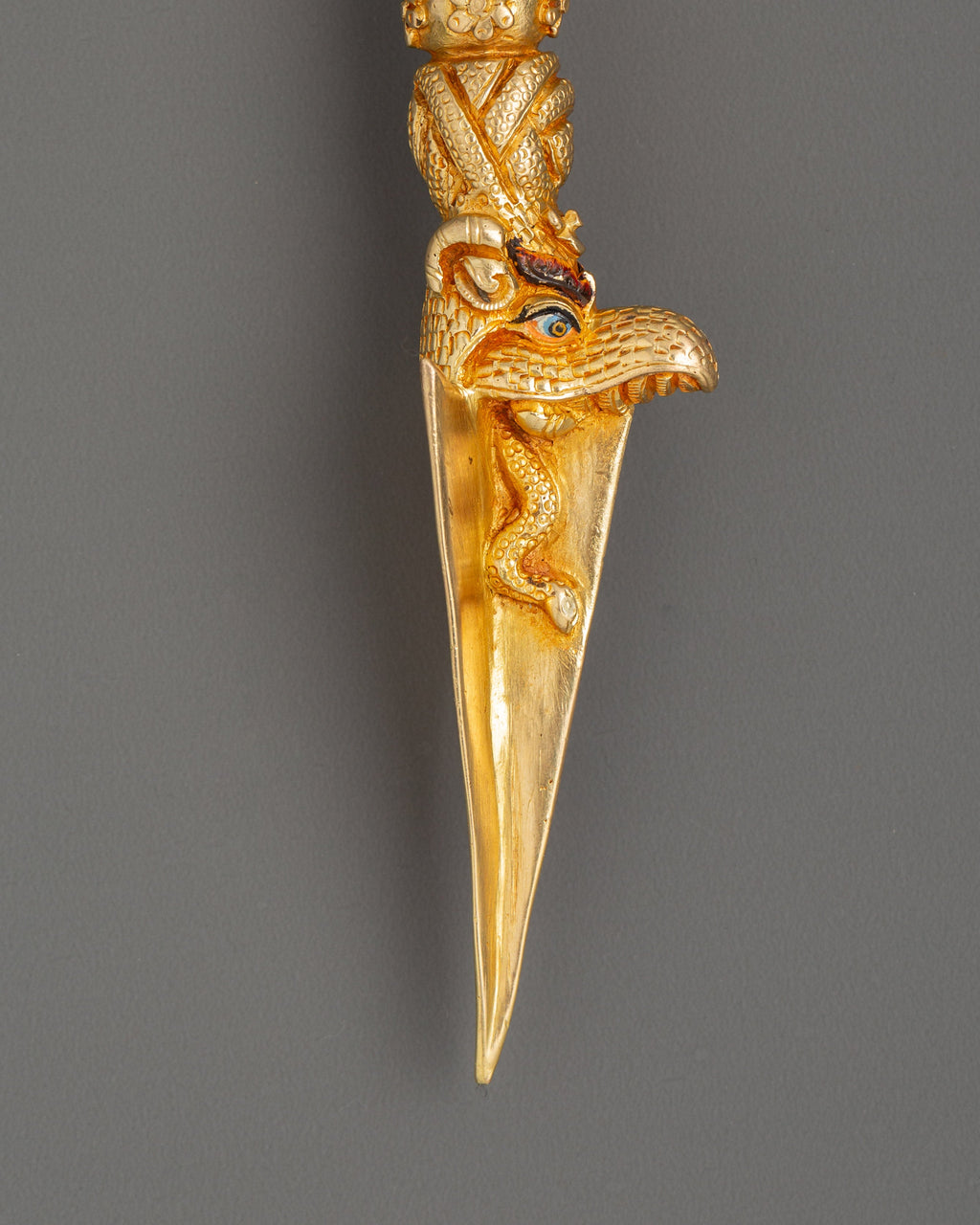 Gold-Plated Tibetan Phurba Dagger - Sacred Ritual Tool of Transformation
