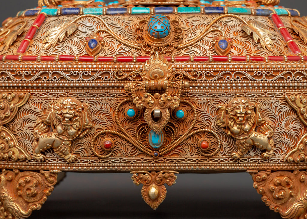 Gold-Plated Tibetan Treasure Box | Ideal for Sacred Storage and Spiritual Altar Decor