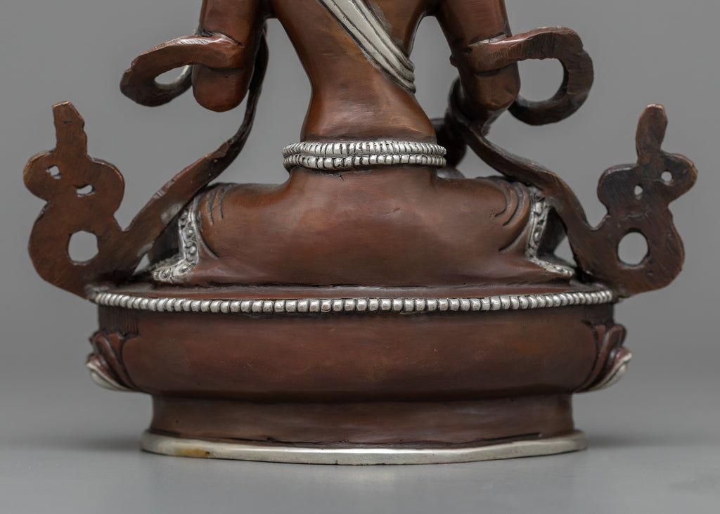 With our Arya Saraswati statue, you may immerse yourself in the world of knowledge and the arts. This delicately made statue of the goddess of knowledge and learning is a lovely addition to any room. The oxidized copper body, along with the exquisite silver plating, creates a balanced combination of tradition and elegance. With its intricate craftsmanship, this statue encapsulates the essence of Saraswati, making it a great piece for scholars, artists, and spiritual searchers alike. The Arya Saraswati statue adds a touch of inspiration and calm to a study, meditation space, or as part of your home decor, acting as a reminder of the power of wisdom, creativity, and the quest of knowledge.