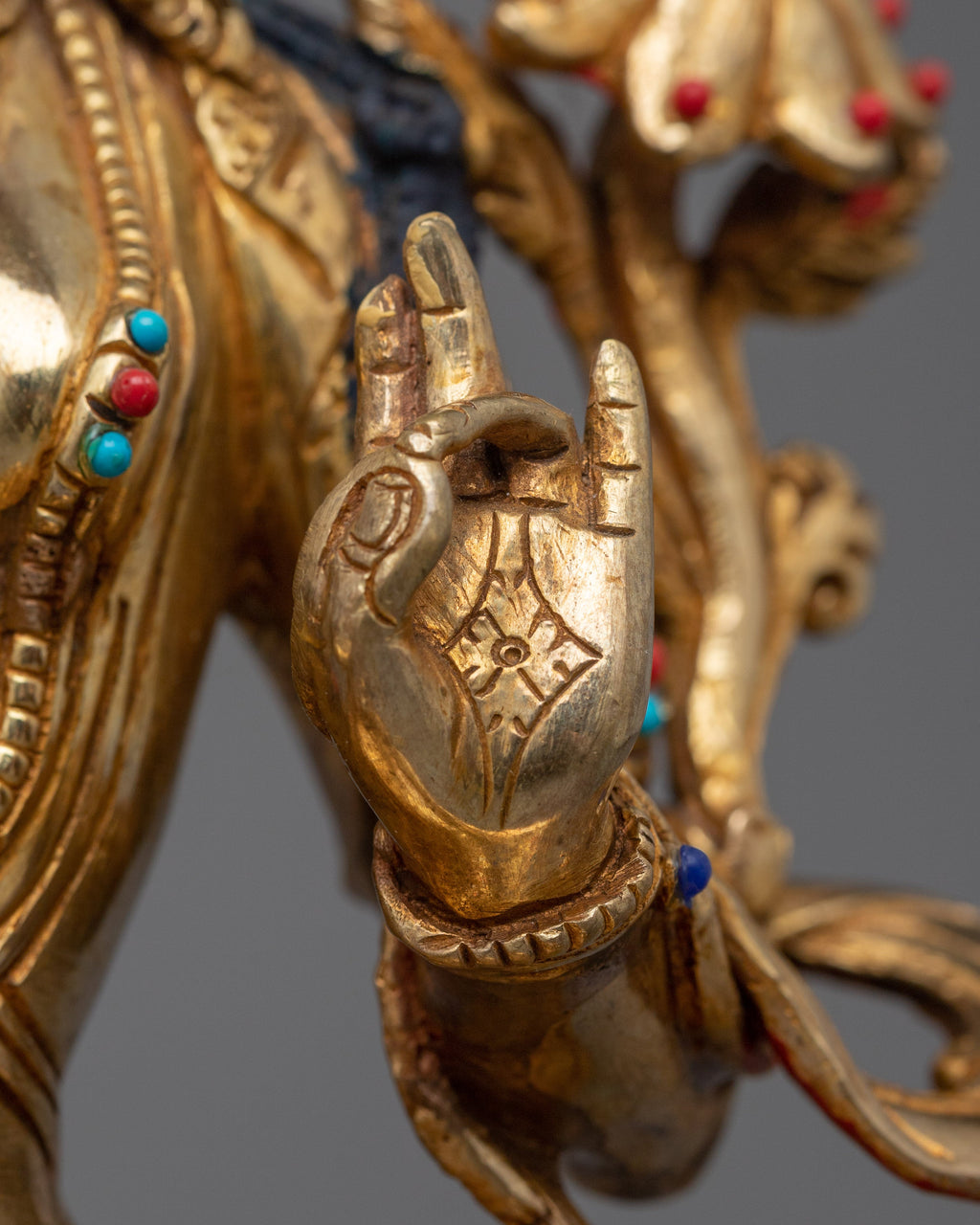 Material: 24K Gold Gilded, Gold & Acrylic Paintings, Hand Carved Gemstone, Copper Body