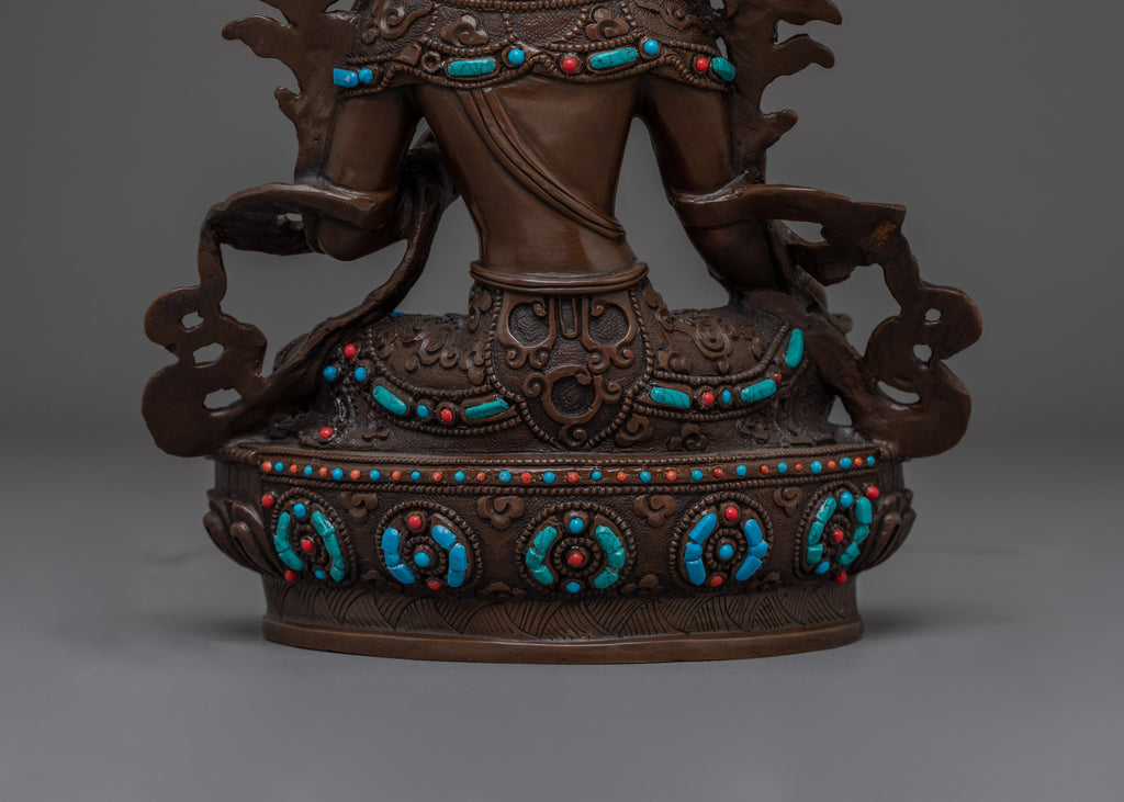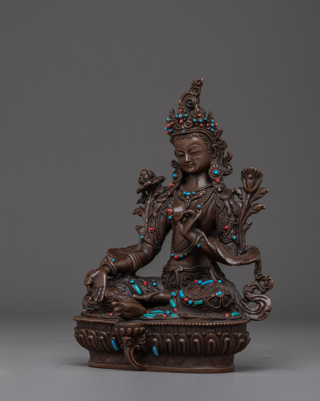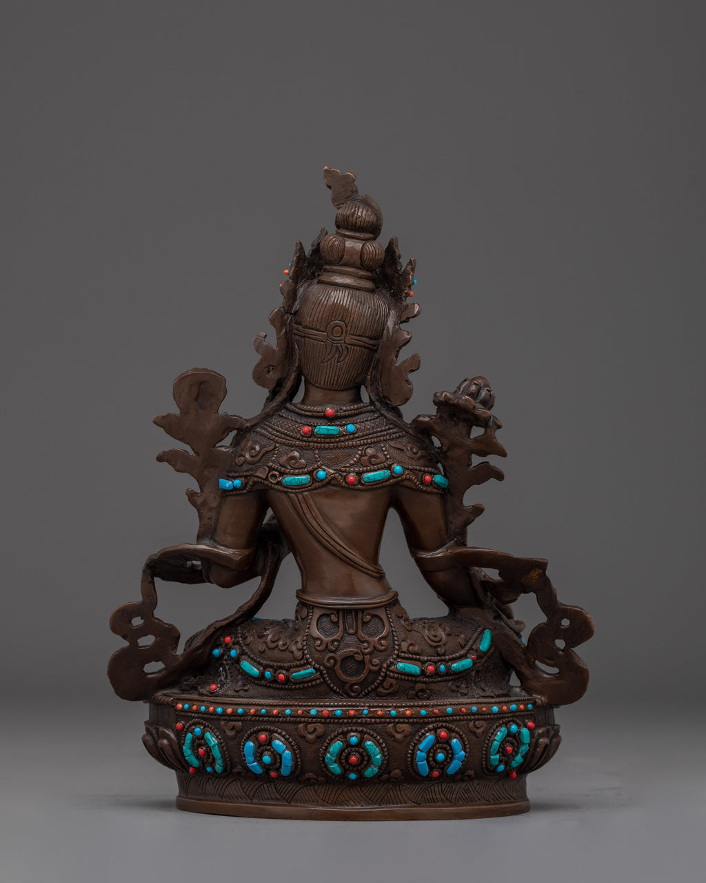 Oxidized Green Tara Bodhisattva Handmade Artwork for Dharma Decor