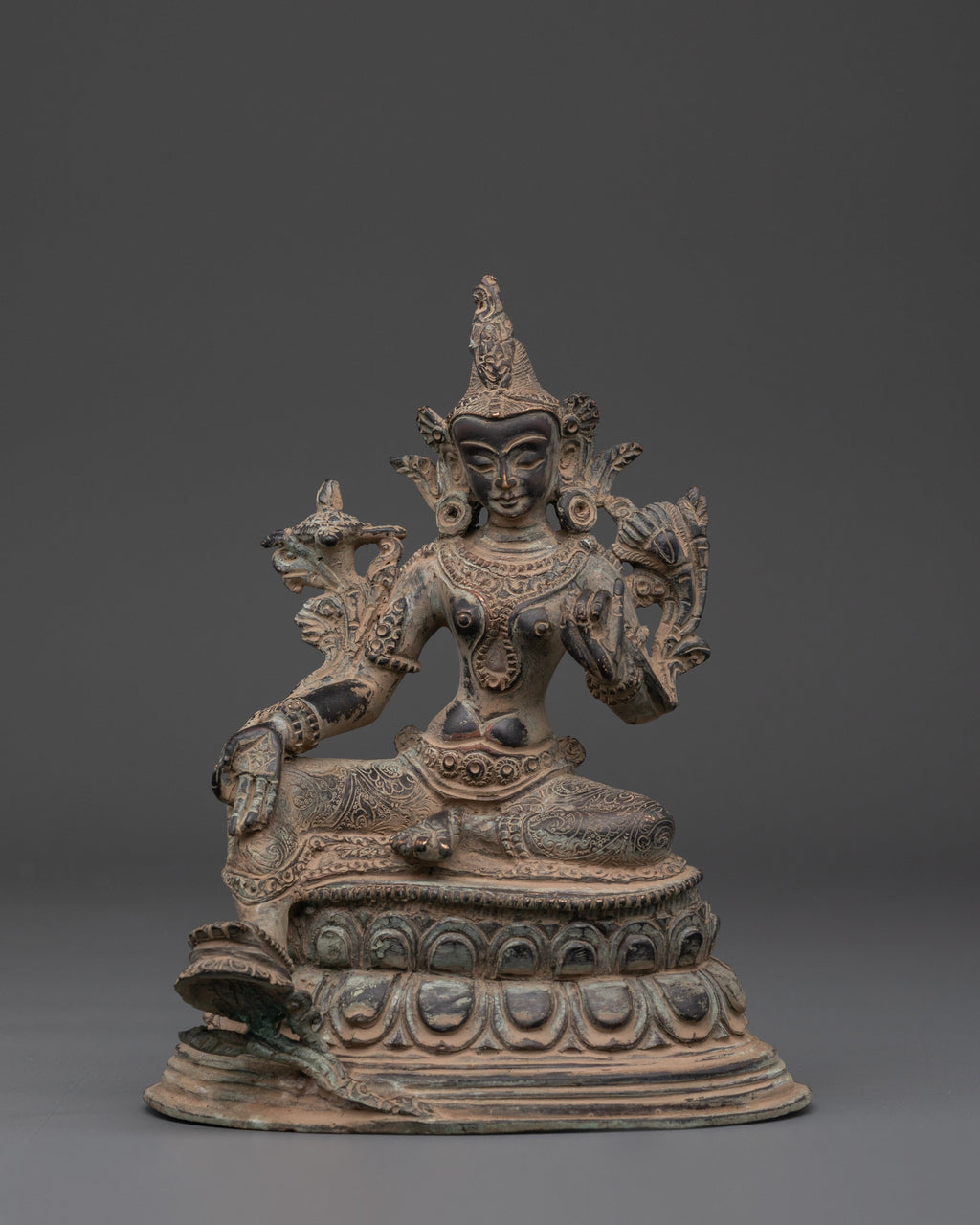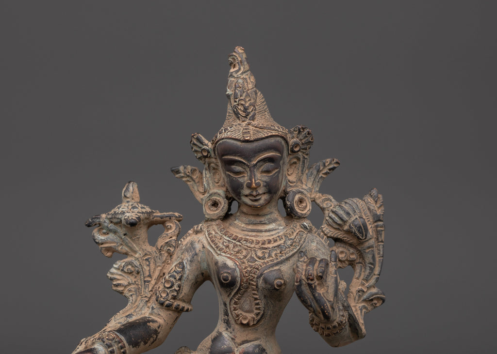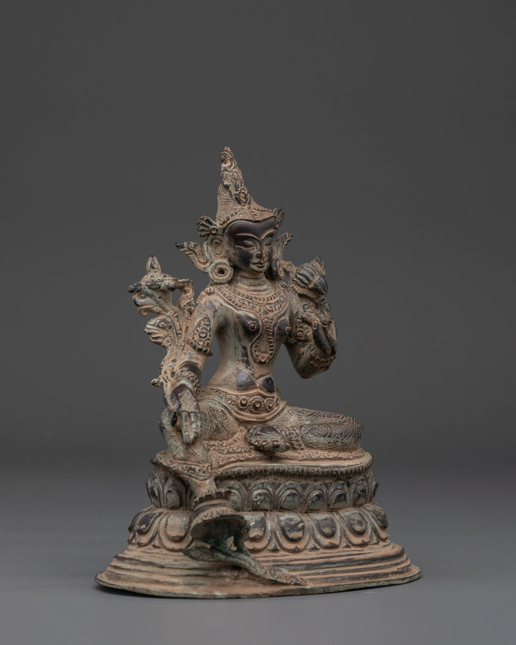 Handcrafted Copper Green Tara Buddhist Goddess Statue | Tibetan Tara Spiritual Altar Decor