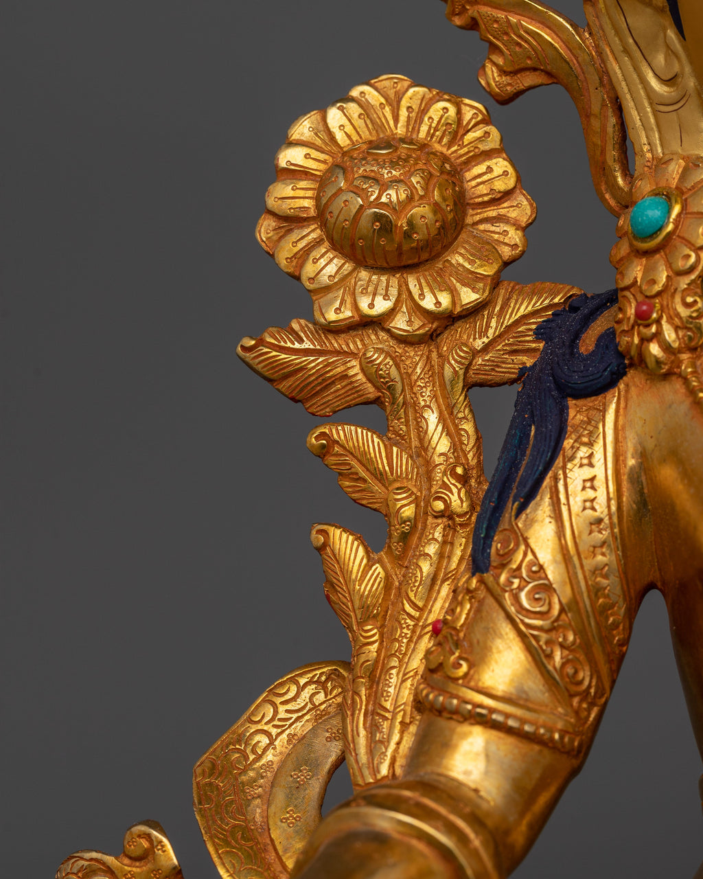 Handcrafted 24K Gold-Gilded Green Tara | Green Tara Compassionate Bodhisattva Sculpture