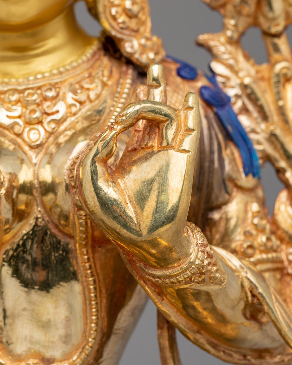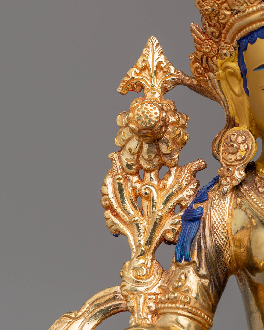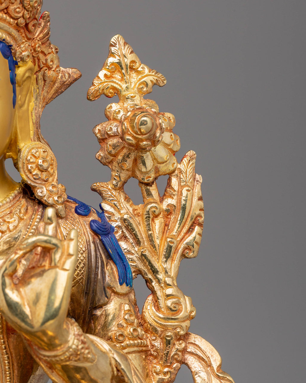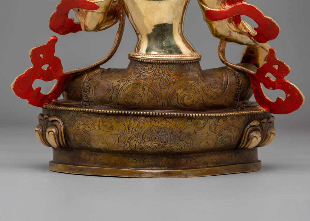 Green Tara is one of the most revered deities in Tibetan Buddhism, symbolizing compassion, swift protection, and empowerment. The 24K gold plating on this statue enhances the goddess’s divine presence, while the vibrant acrylic colors and copper body further accentuate her delicate features. The statue’s serene, nurturing energy encourages tranquility, compassion, and spiritual growth. As a guide for practitioners, Green Tara helps clear obstacles and brings peace to the mind. This beautifully crafted Green Tara Handmade Copper Statue will fill your space with grace, protection, and blessings, making it an essential piece for your meditation practice or Buddhist altar.