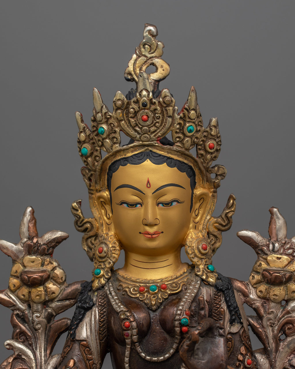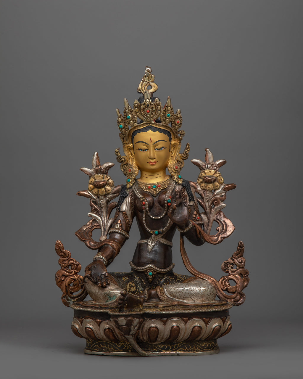 Tibetan Green Tara Protective Deity Figurine in Buddhism for Shrine Decor
