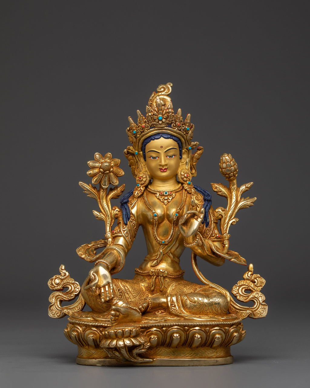 Green Tara Sculpture in Copper | Spiritual Altar Decor