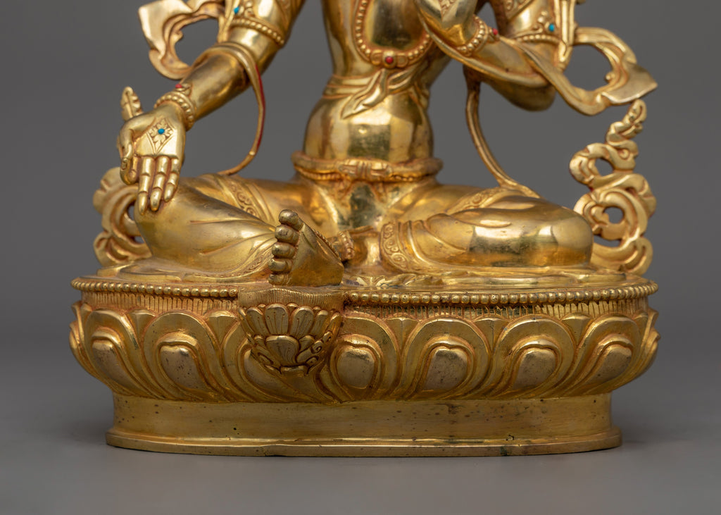 24K Gold Gilded Green Tara Spiritual Decor for Divine Protection and Dharma Gift