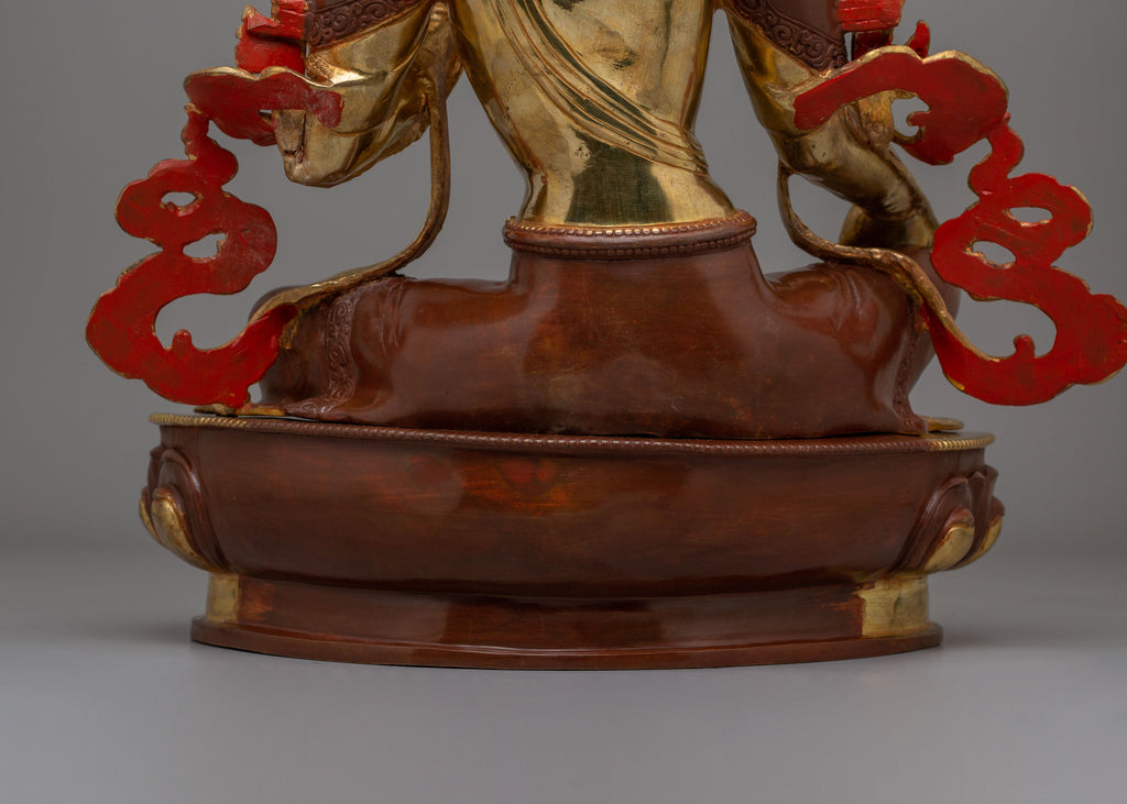 The Green Tara Statue of Love and Compassion beautifully embodies Green Tara, the revered goddess of compassion, healing, and protection. Standing at 46.5 cm tall and 26 cm wide, this exquisite statue is handcrafted from copper with acrylic color detailing. Weighing 8.45 kg, it offers a substantial presence, making it a striking centerpiece for any sacred space or altar.
