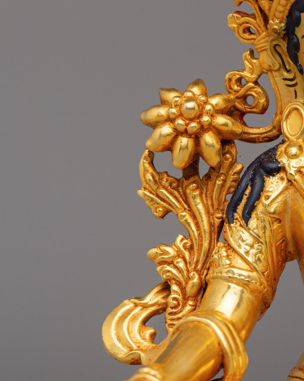 The combination of copper, gold plating, and vibrant acrylic colors enhances the statue's beauty and depth, creating a luminous presence that captures the eye and heart. This Green Tara statue serves as a constant reminder of compassion and protection, inspiring mindfulness and devotion in those who encounter it. It is perfect for practitioners, collectors, or anyone seeking to bring blessings and peace into their environment.
