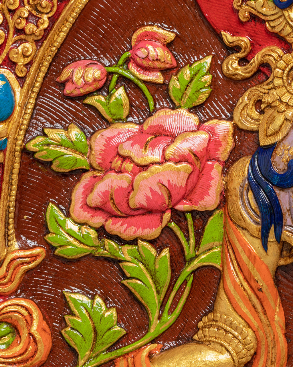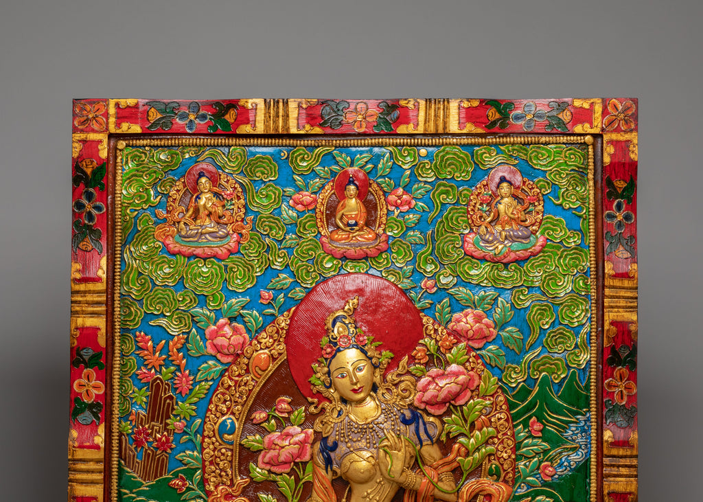 Perfect for practitioners of Buddhism, meditation enthusiasts, or collectors of Asian spiritual art, this Buddhist wall art transforms any space into a sacred sanctuary. The three-dimensional relief construction gives remarkable depth and presence. The assembly of Green Tara, Manjushri, Vajrapani, and Amitabha Buddha creates a complete spiritual presence—wisdom, power, infinite light, and compassionate action united in one Tibetan deity sculpture. This meditation wall art serves as a daily reminder of compassion and enlightenment, making it a meaningful spiritual gift or centerpiece for your Buddhist home decor. This authentic thangka wall hanging brings blessings into your daily life, supporting your spiritual journey with protective and compassionate presence.