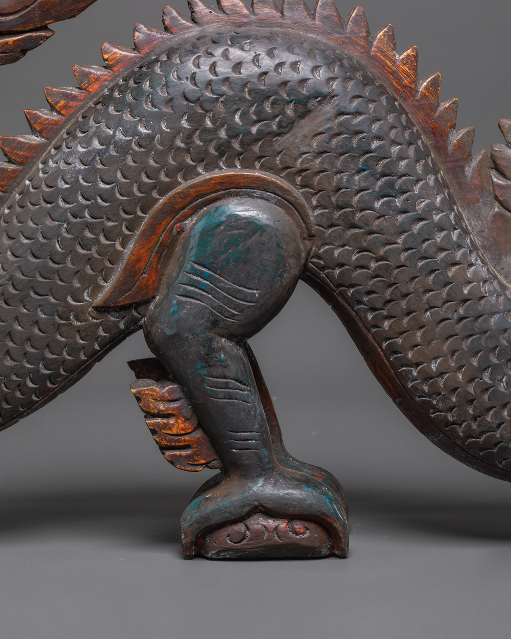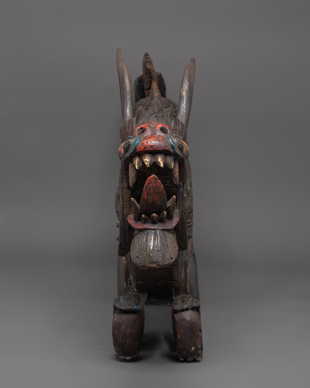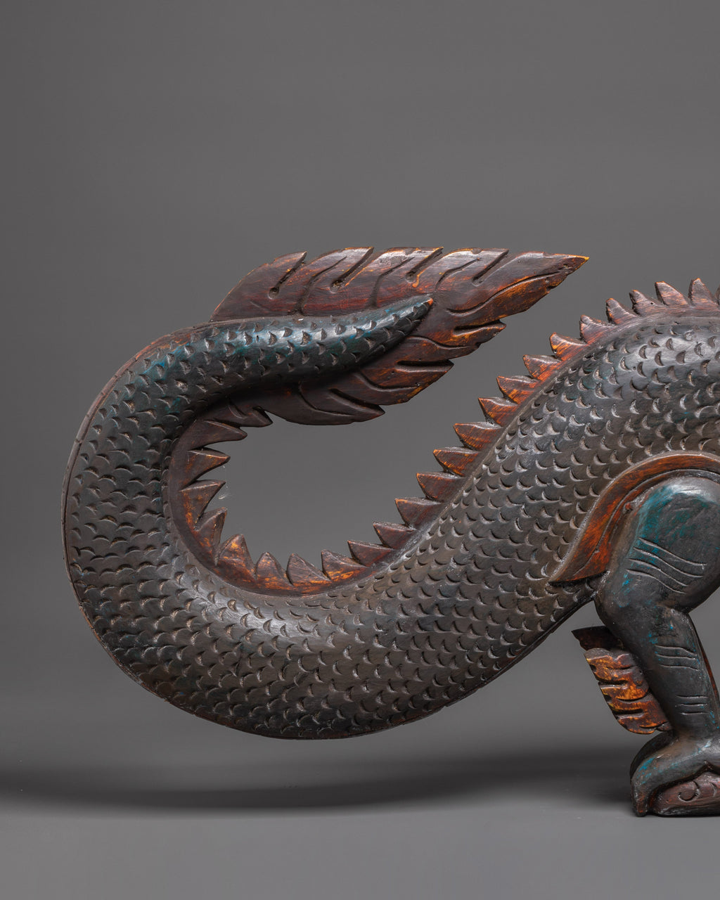 Handcrafted Wooden Dragon Statue | Protective Himalayan Altar Decor