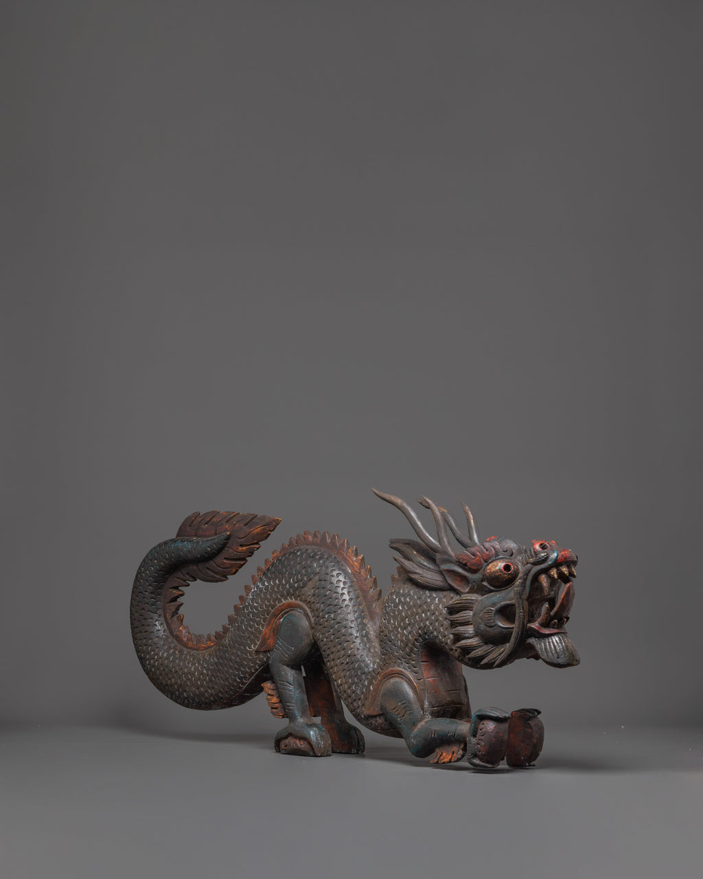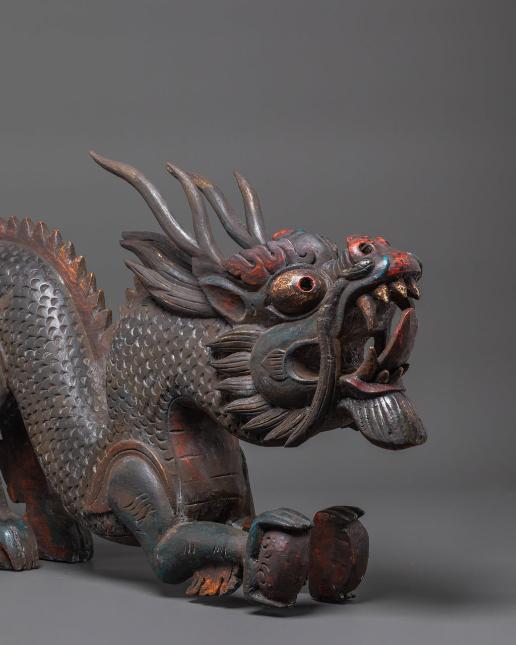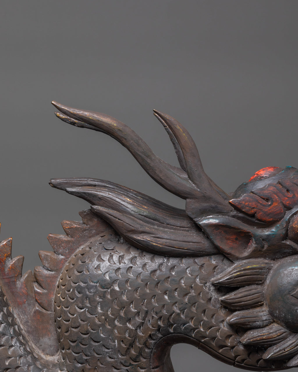 Handcrafted Wooden Dragon Statue | Protective Himalayan Altar Decor