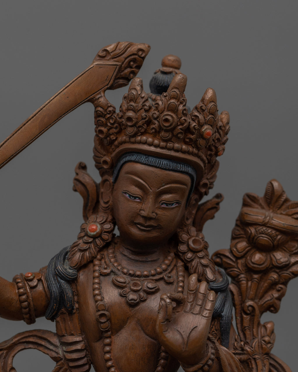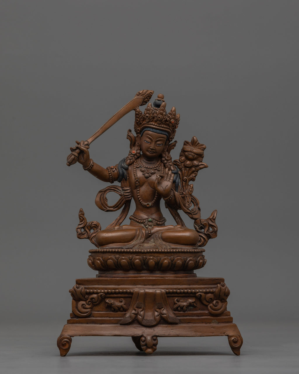 7.7 Inch Oxidized Guardian Manjushri Sculpture | Wisdom Deity Himalayan Art