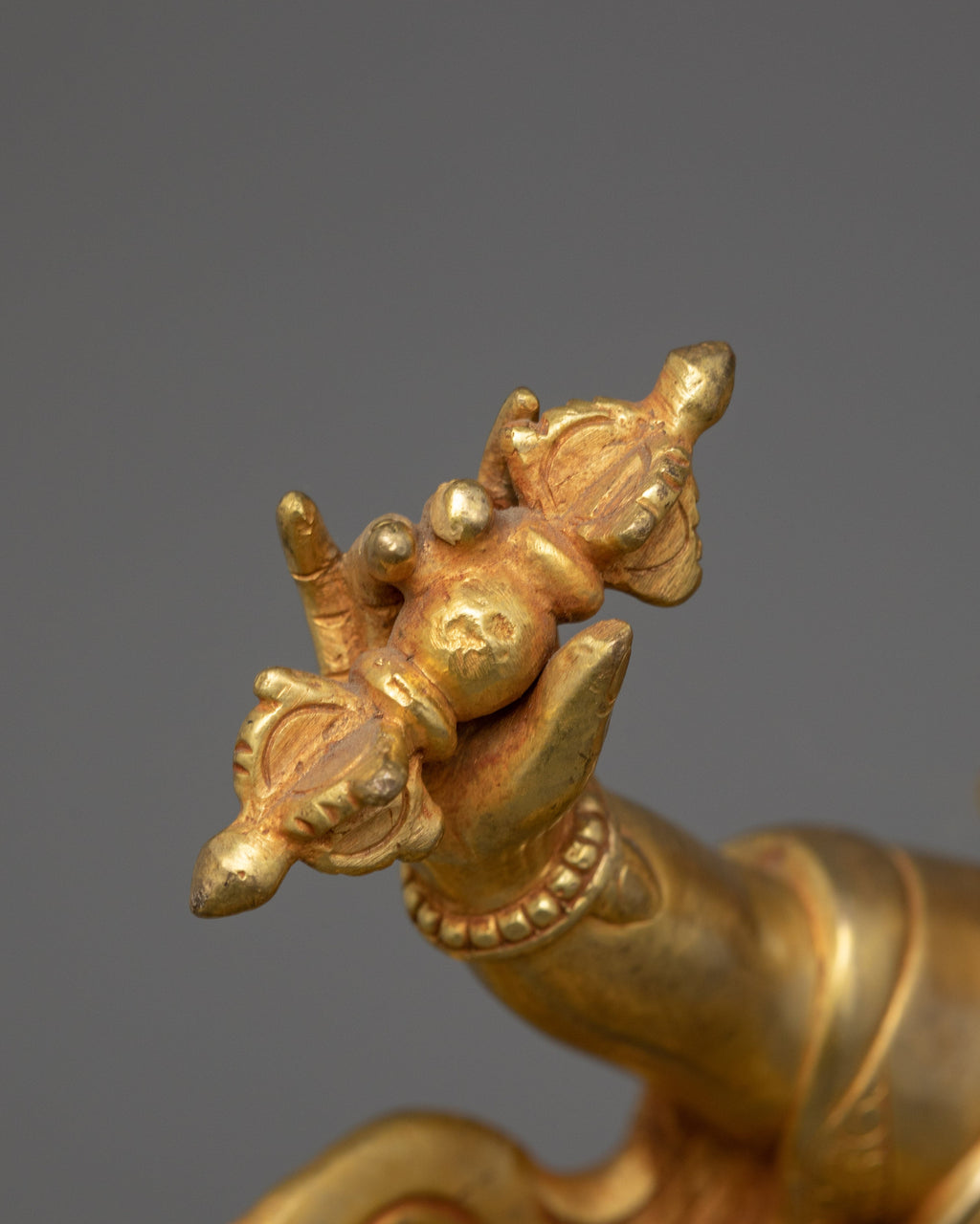 This 12.2-inch Guru Dorje Drollo sculpture is a handcrafted piece, embodies the fierce wisdom and energy of this enlightened protector. Crafted from pure copper and gilded in 24K gold, this statue radiates divine energy, with intricate gold and acrylic paintings enhancing its spiritual presence. Its powerful stance and expressive details make it a profound addition to any meditation space, shrine, or sacred altar.