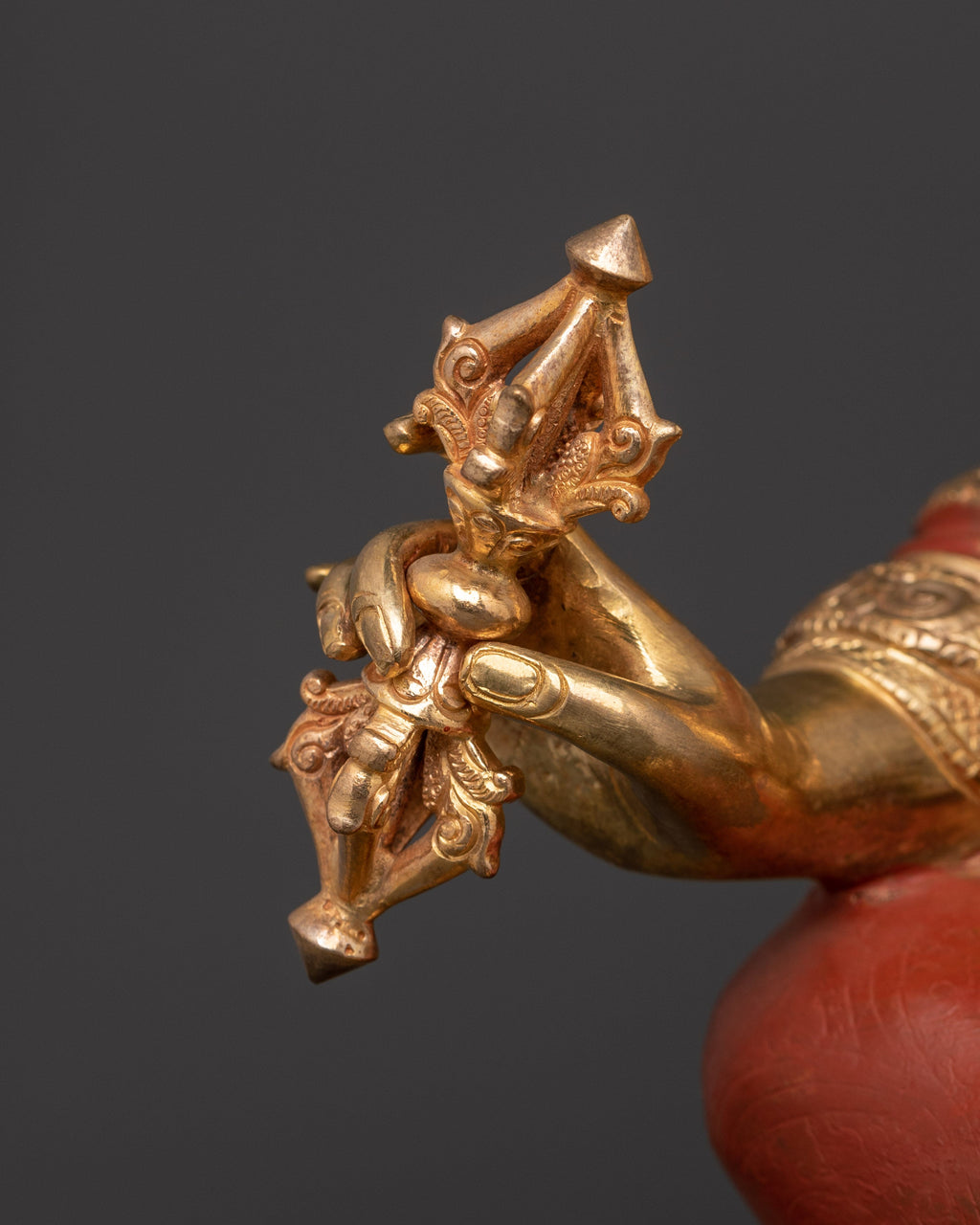 This Padmasambhava statue, expertly carved from copper and plated in vibrant gold, is a precious addition to any meditation altar or spiritual environment. The vajra represents eternal wisdom, the trident represents protection and purification, and the vase represents longevity and spiritual richness. Placing this statue in your house or shrine brings healing energy, spiritual insight, and the blessings of Guru Rinpoche. Whether for personal devotion, meditation, or as a memorable gift, this statue combines spiritual strength and artistic grace.