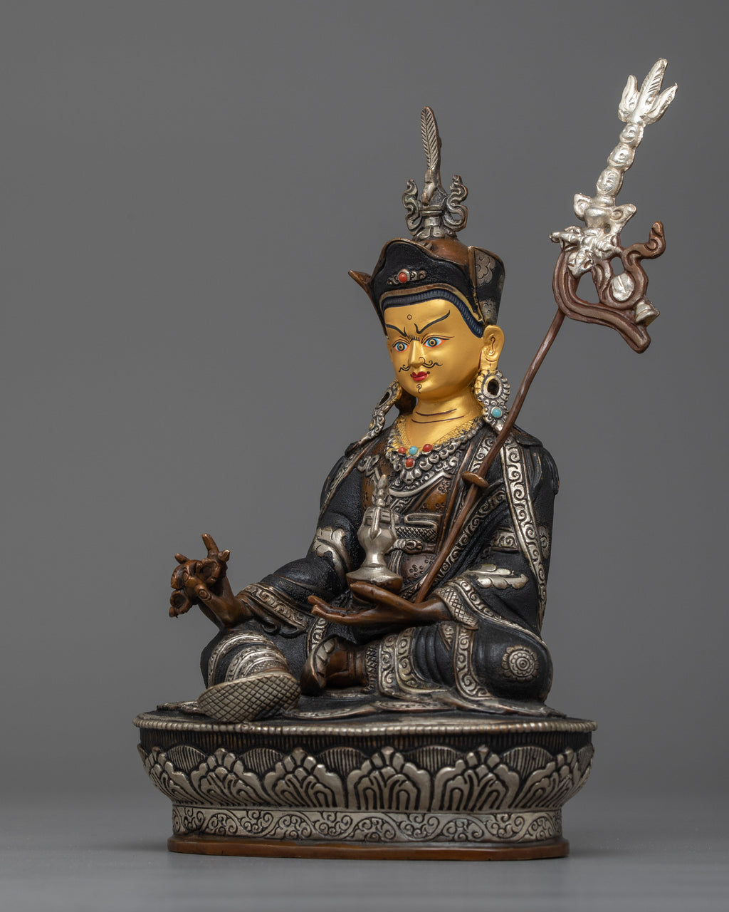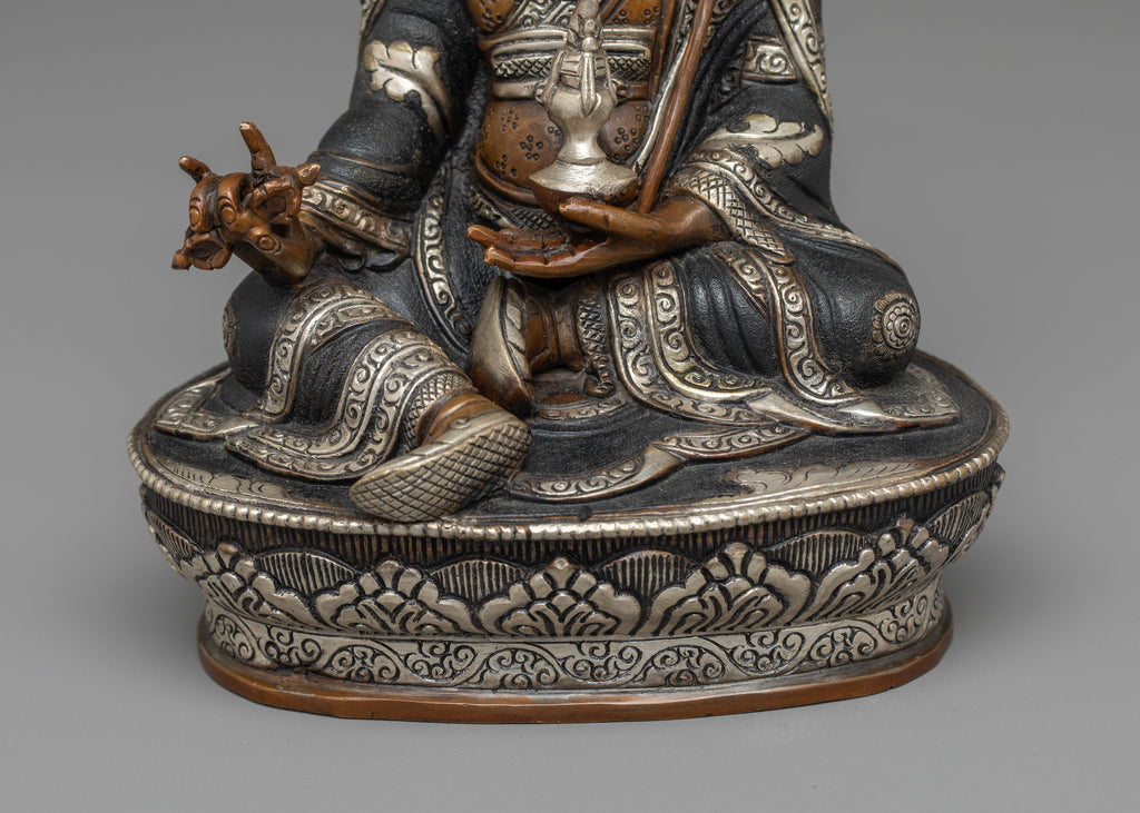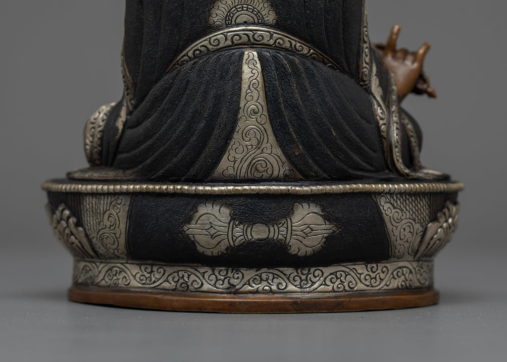 Elevate Your Space with Our Guru Rinpoche Oxidized Silver-Plated Statue