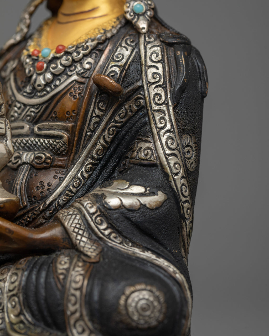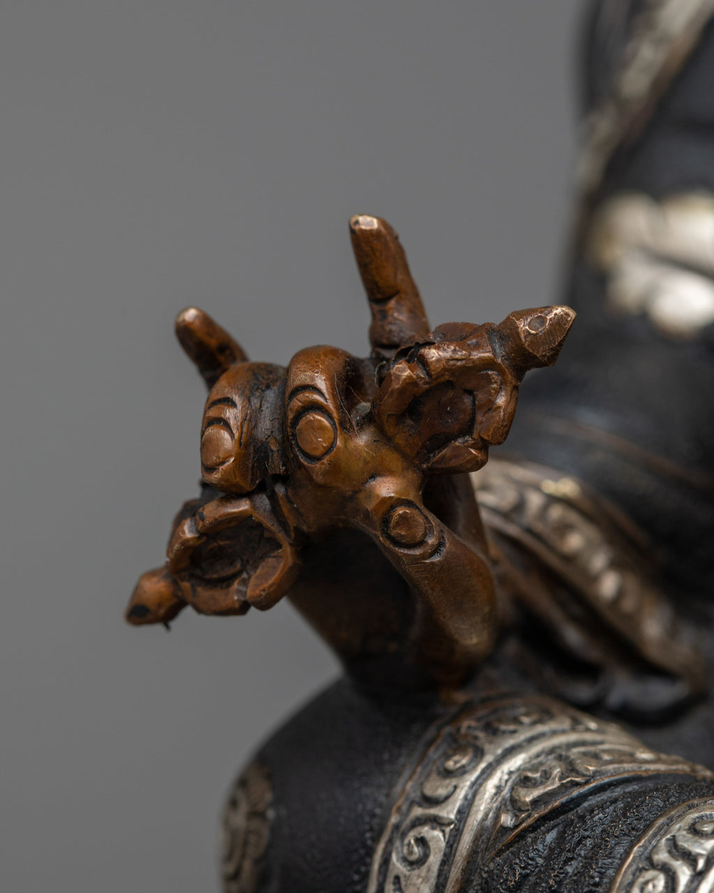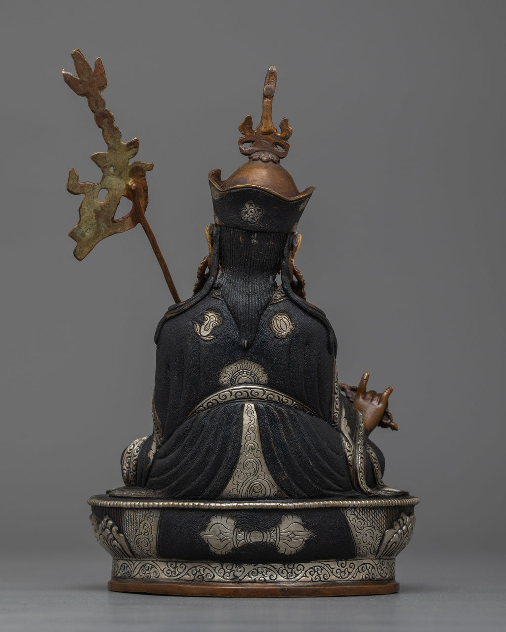 Elevate Your Space with Our Guru Rinpoche Oxidized Silver-Plated Statue