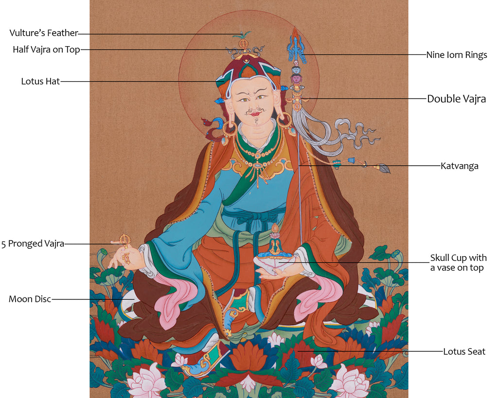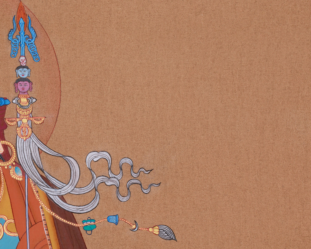 Exquisite Guru Rinpoche Tibetan Master Artwork | A Thangka Showing the Lotus-Born Master as the Protector of the Dharma