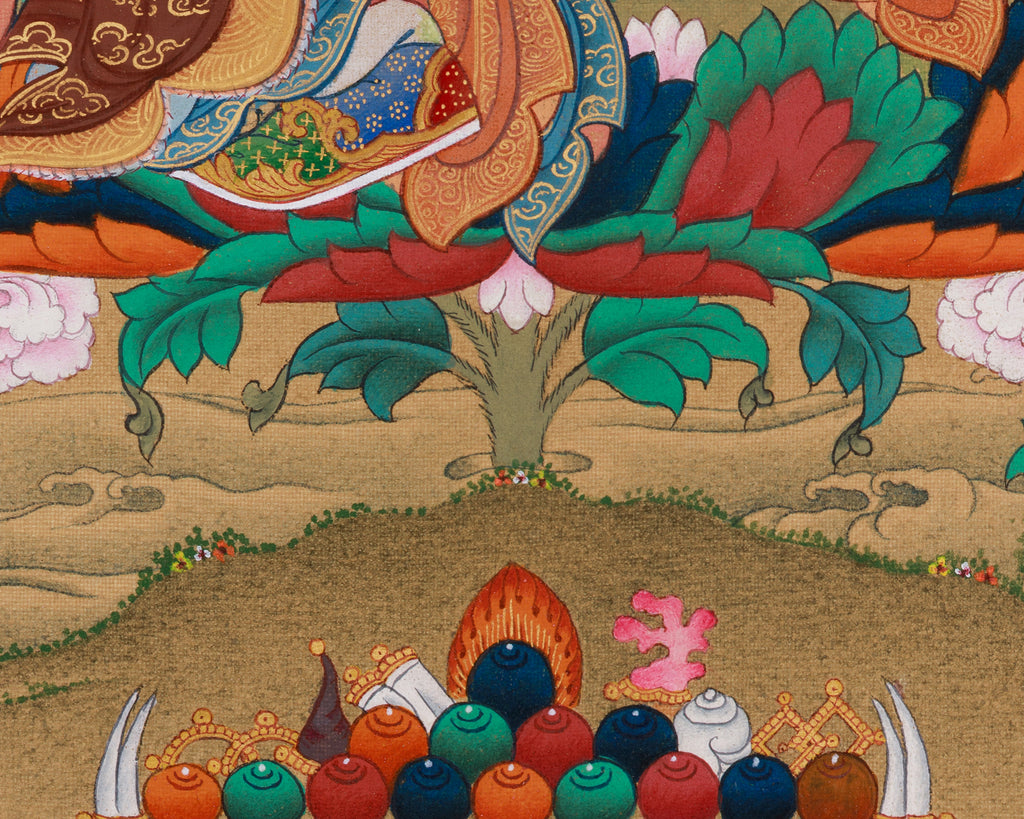 HAND-PAINTED WITH NATURAL LHASA STONE COLOR AND GENUINE 24K GOLD IN TRADITIONAL KARMA GADRI STYLE