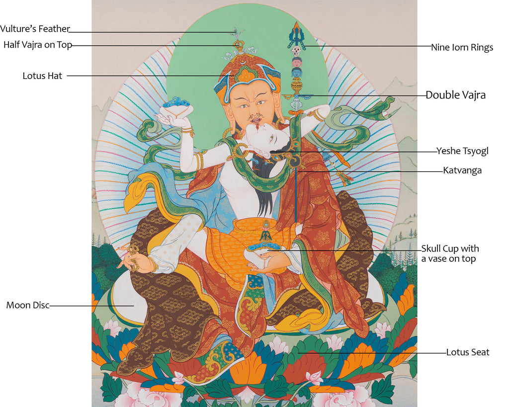 Hand-Painted Guru Rinpoche with Consort, Yeshe Tsogyal in Tantric Embrace | Enlightened Union and Blessing Power