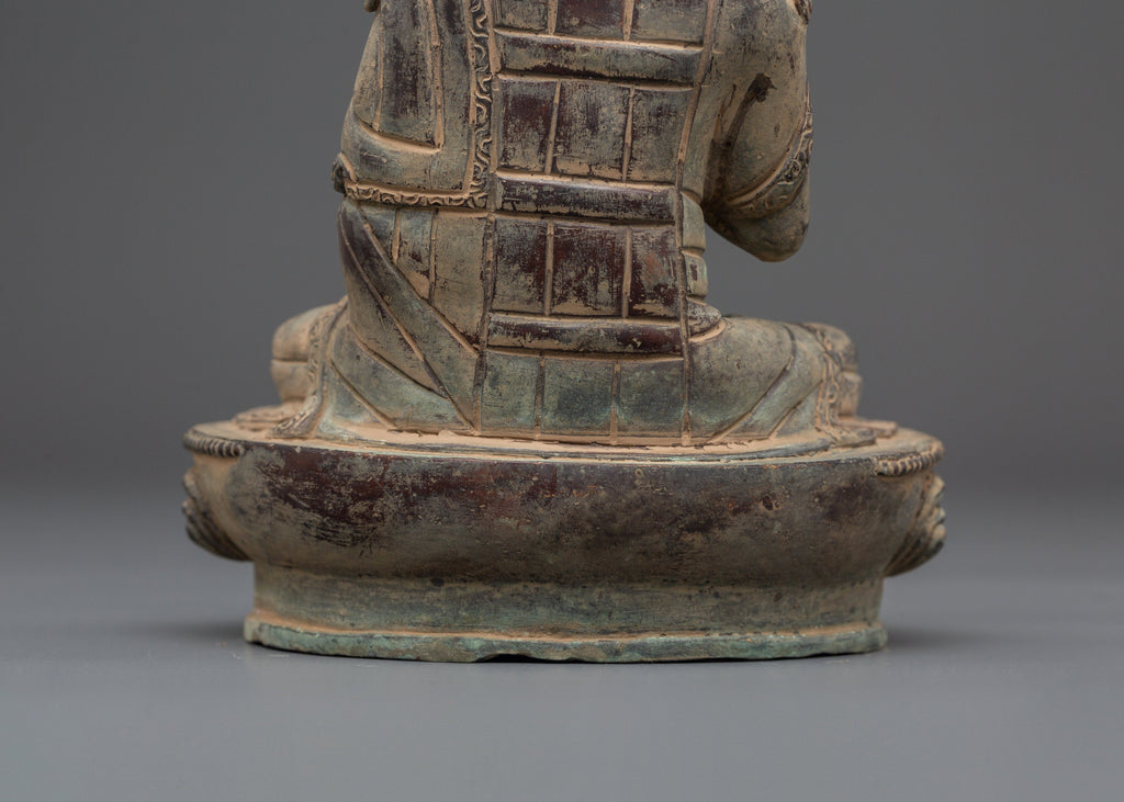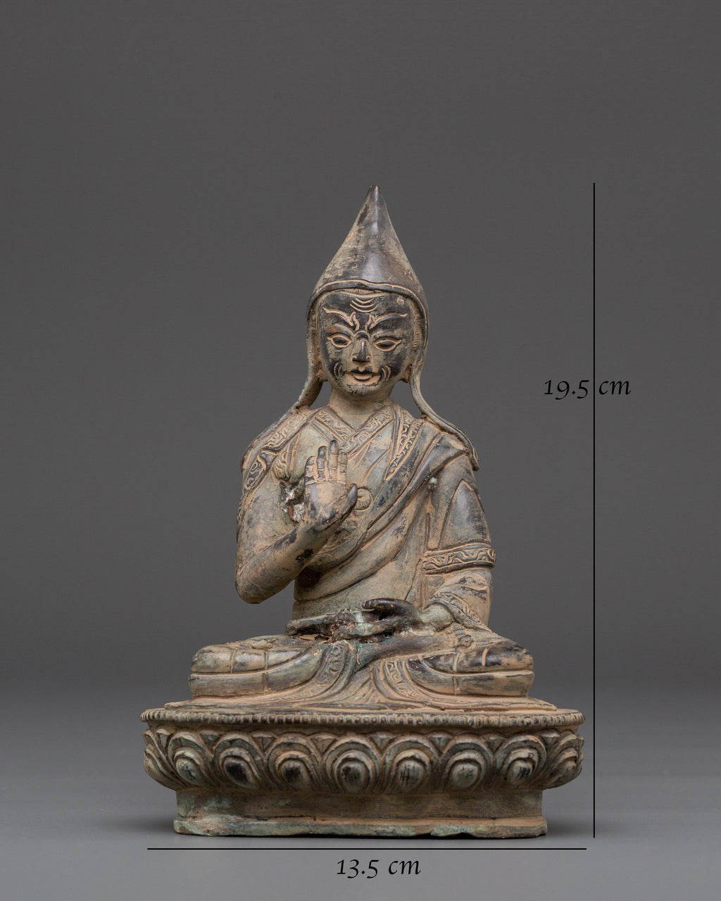 The fine detailing highlights Gyaltsab Je’s serene expression and traditional robes, symbolizing compassion, knowledge, and enlightenment. In Tibetan Buddhism, statues of great masters, such as Gyaltsab Je, serve as sources of inspiration and guidance, reminding practitioners of their commitment to the Dharma. The antique finish gives this piece a timeless presence, making it both spiritually significant and visually captivating. This Buddhist master statue is ideal for practitioners, collectors, and those wishing to honor the Tibetan Buddhist lineage.
