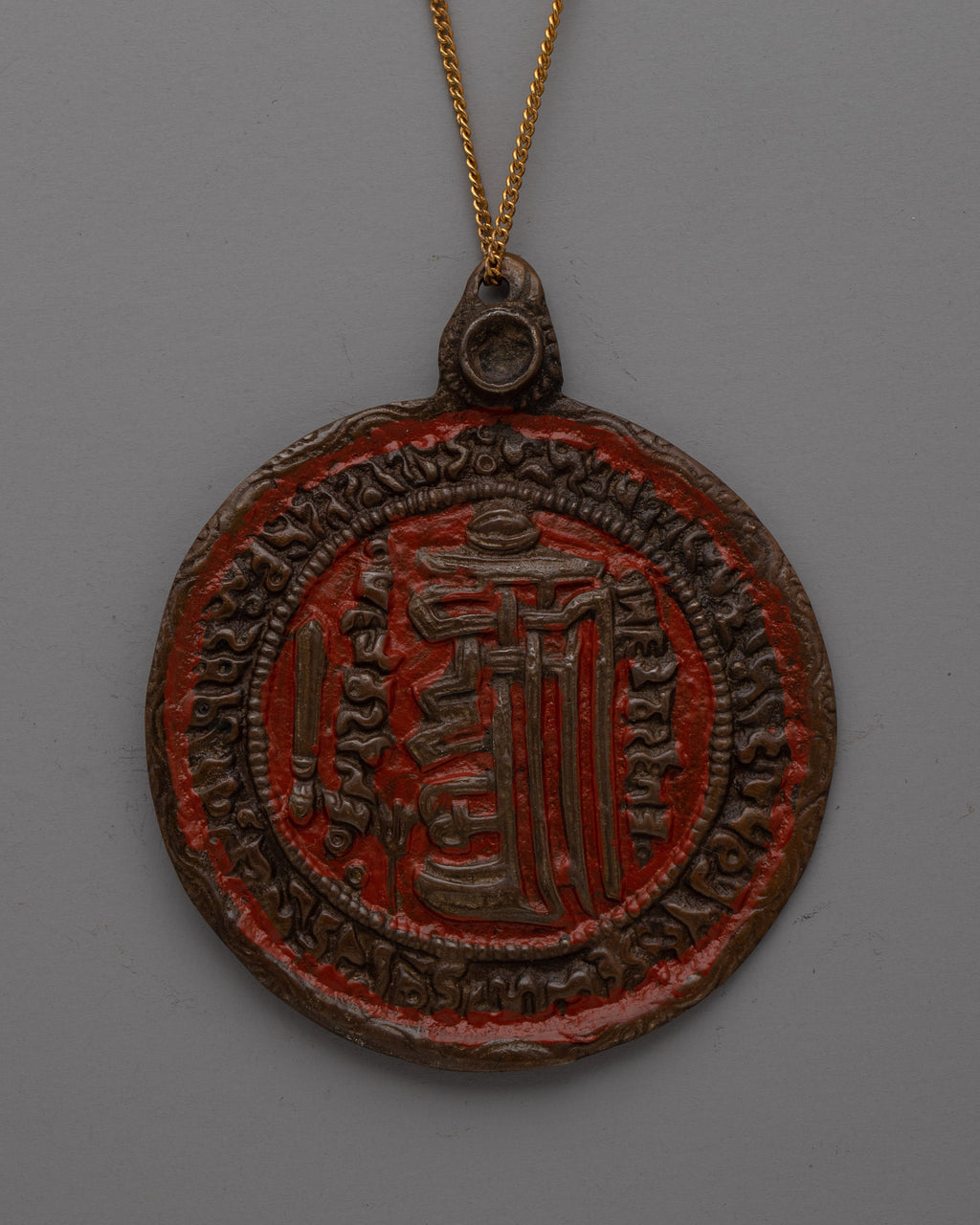 This locket, with its elaborate design depicting ancient Buddhist symbols, will serve as a gentle reminder of your spiritual journey. It can be used as a personal amulet or exhibited in a meditation or prayer space. Whether given to a loved one or retained as a treasured item, this locket gives blessings, spiritual support, and a sense of connection to Buddhism's teachings.