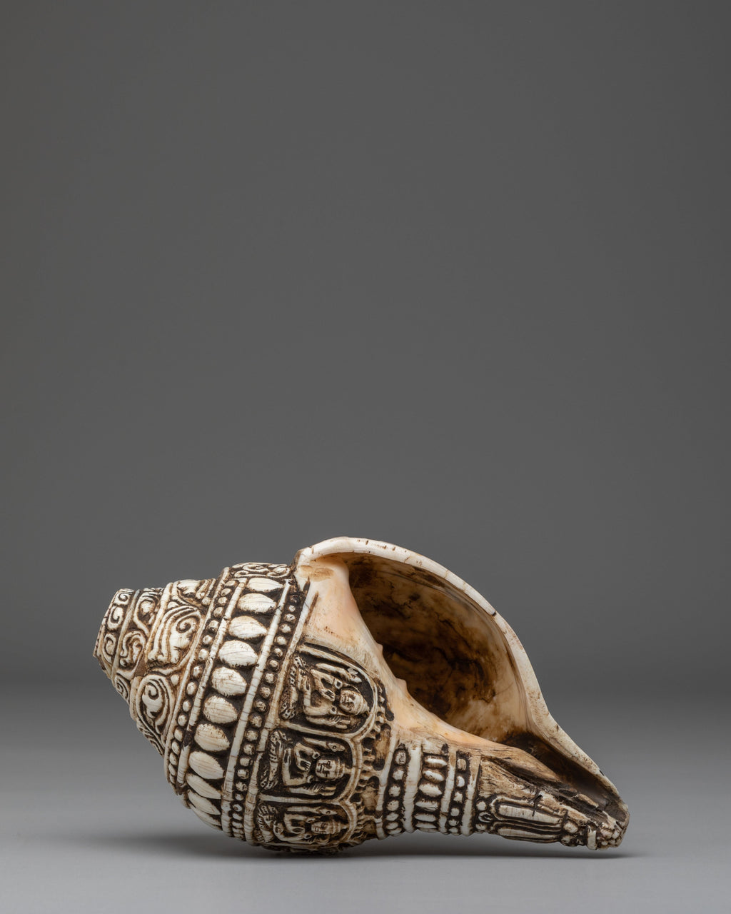 Perfect for use in Buddhist altars, meditation rituals, or as a decorative spiritual item, this hand-carved Tibetan Conch Shell serves as a reminder of the sacred teachings of Buddhism. Whether used to mark the beginning of a meditation session, invoke divine protection during ritual ceremonies, or displayed as a symbol of spiritual awakening in your home, this piece will elevate any sacred space with its profound energy and beauty. It’s also a wonderful gift for anyone who practices Buddhism or is interested in spiritual traditions.