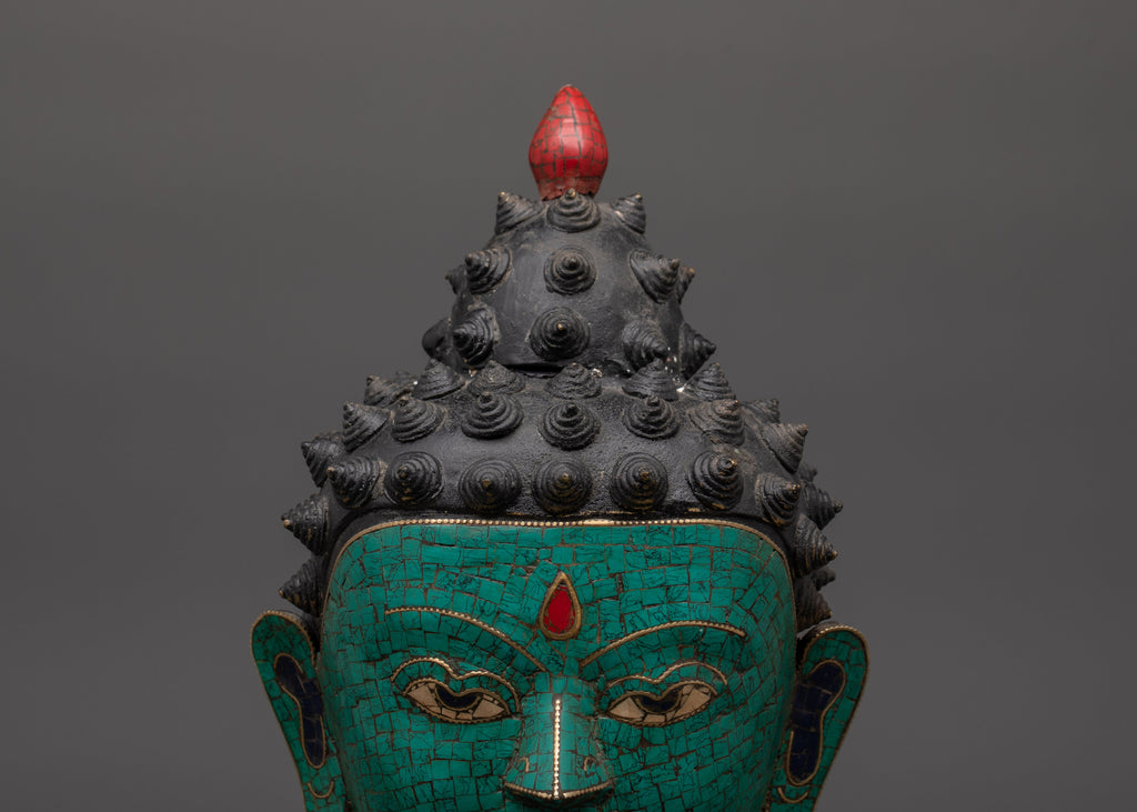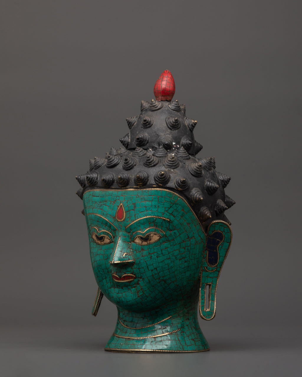 This piece, crafted from brass and carefully inlaid with Artificial turquoise and coral, combines traditional workmanship with religious symbolism. Turquoise promotes healing and tranquility, whereas coral provides protective energy and grounding. Whether used for meditation, yoga studio ambiance, or as a present for spiritual searchers, this enormous Buddha head combines apparent elegance and mindful connection.