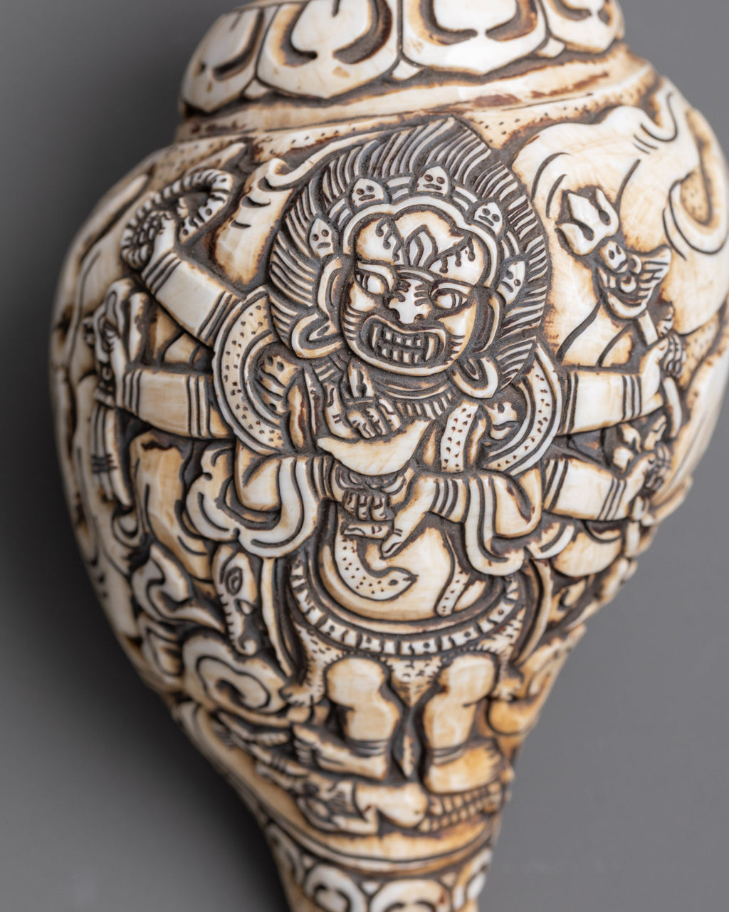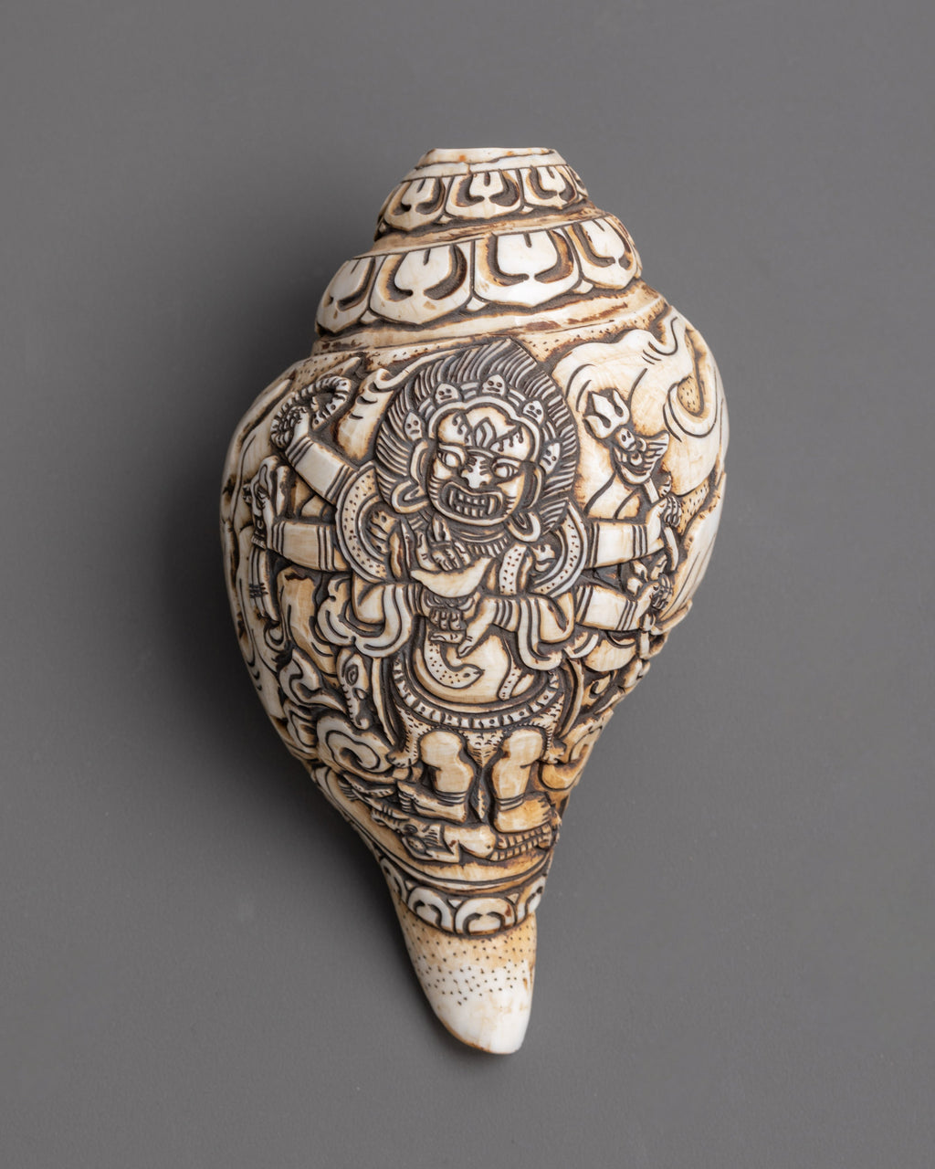 Hand Craved Six Armed Mahakala Conch | Sacred Conch Shell for Protection