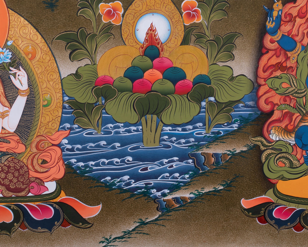 As you requested for consecrations/blessings, we can take the thangka to nearby monasteries/Rinpoches from the Boudha Stupa. We kindly ask that you contribute $50 to the monasteries for these blessing/consecration services.