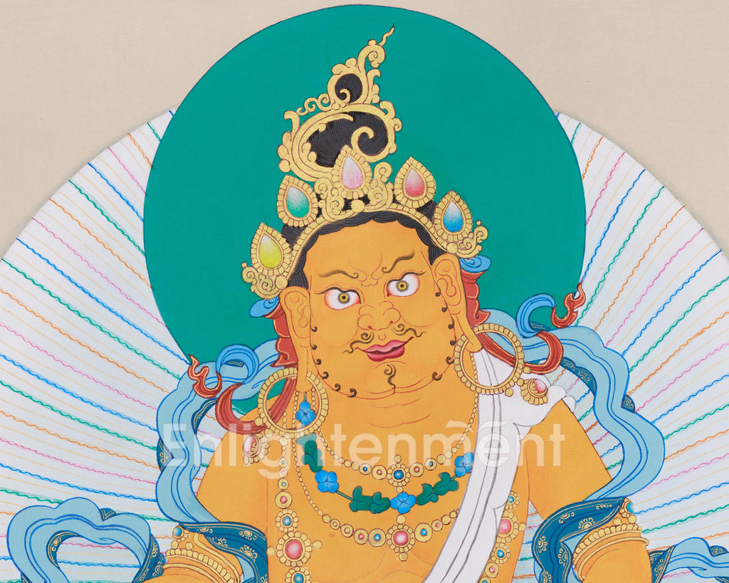 Original Hand-Painted Tibetan Wealth Deity, Dzambhala | Buddhist God of Prosperity, Fortune & Protection