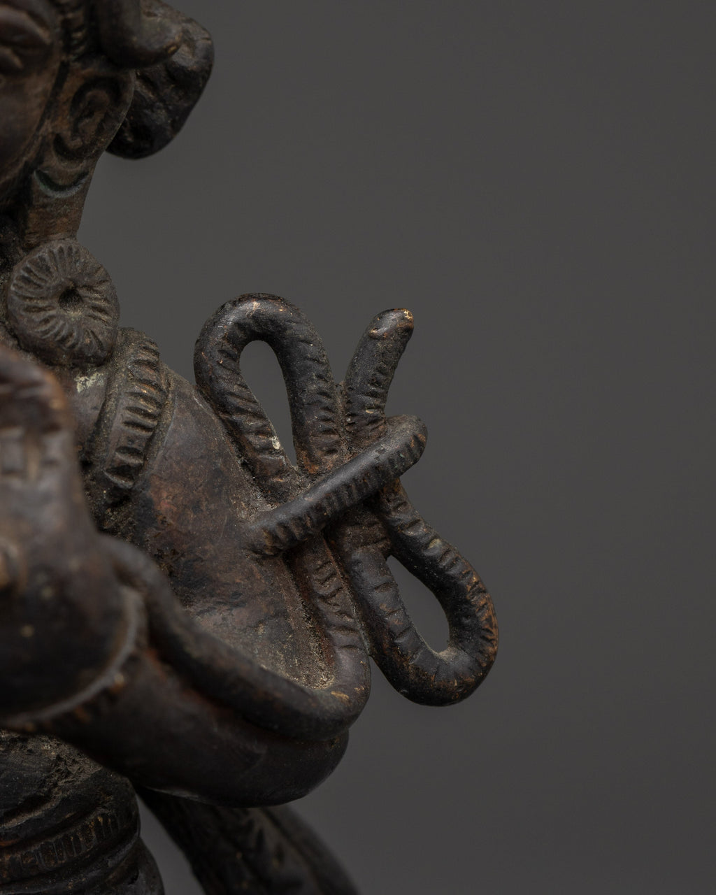 This statue, crafted from brass with a deep antique finish, exudes a sense of timelessness and spiritual significance. Standing at 15.5 cm (height) and weighing 0.48 kg, it is an ideal complement to any sacred area. The Achalaa Statue is expertly crafted, ensuring each piece features meticulous craftsmanship. Whether placed in a shrine or as an altar ornament, this statue serves as a powerful protector deity, helping you through spiritual progress and inner calm. It'smorcalm. It's a sculpture; it represents unwavering protection and peace.
