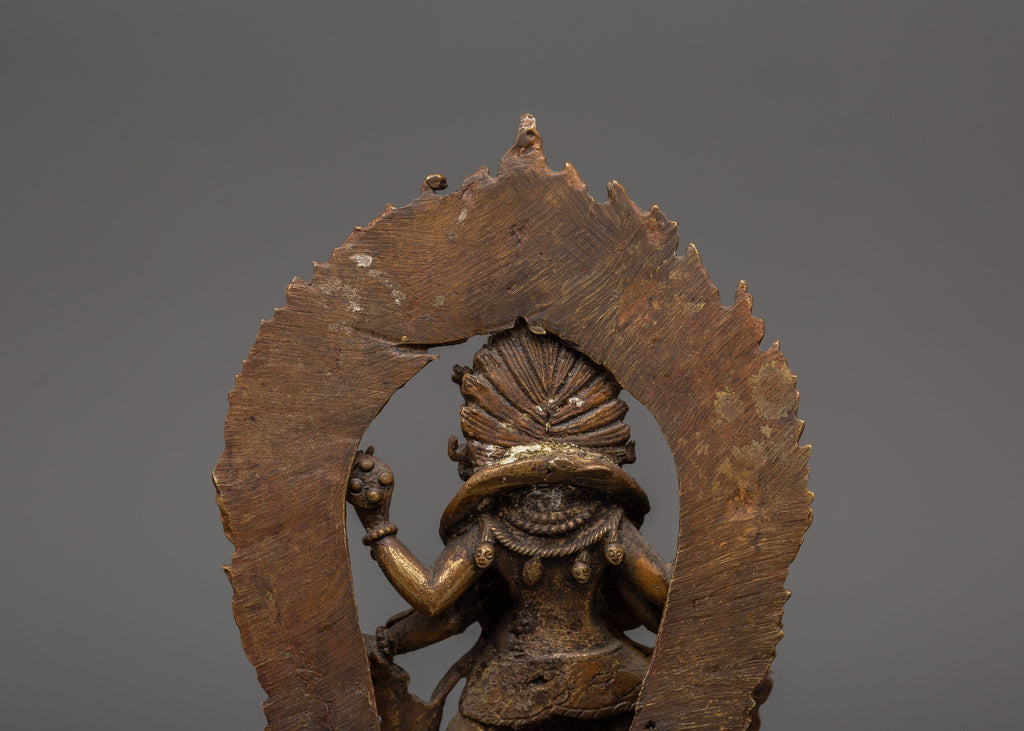 This brass Mahakala statue is gorgeous art and a powerful spiritual talisman. It prevents evil and brings protection, prosperity, and spiritual development. This Mahakala statue is vital for anyone looking to deepen their spiritual journey, whether they practice Vajrayana Buddhism or want a powerful spiritual presence in their house. Its rich design and powerful energy will boost your meditation practice while providing calm and safety for your sacred area.